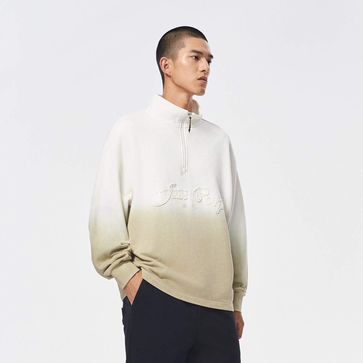 上衣男女款 Fun2025秋冬季 套头卫衣渐变长袖 运动半拉链宽松版 时尚