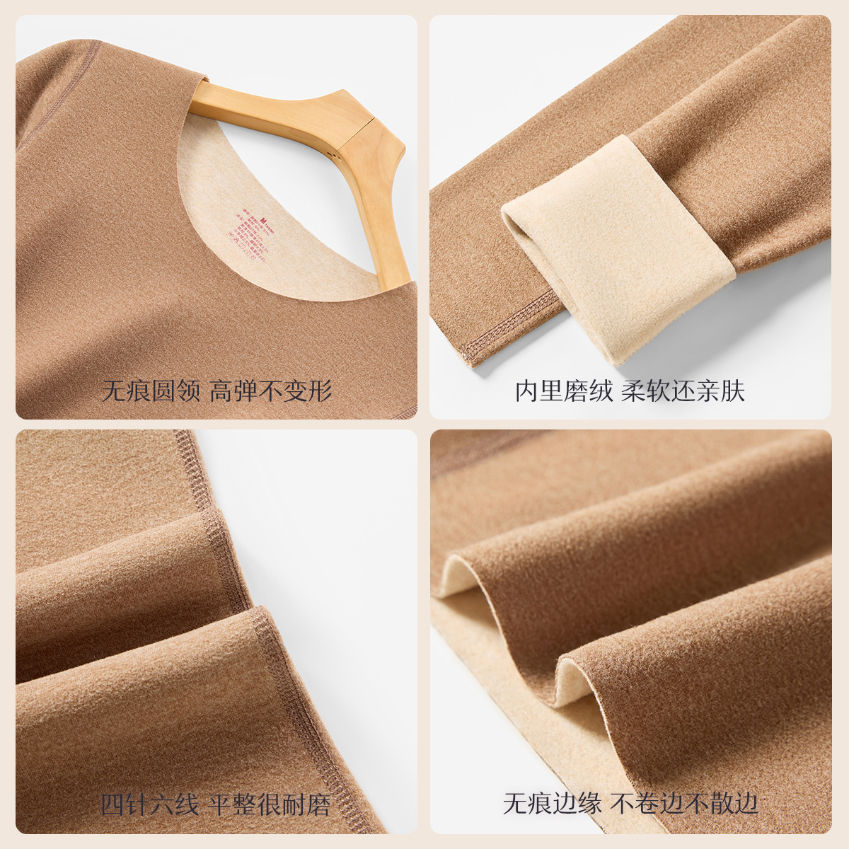 羊绒蚕丝中老年保暖内衣妈妈秋衣女士加绒加厚秋冬季 内穿内衣防寒