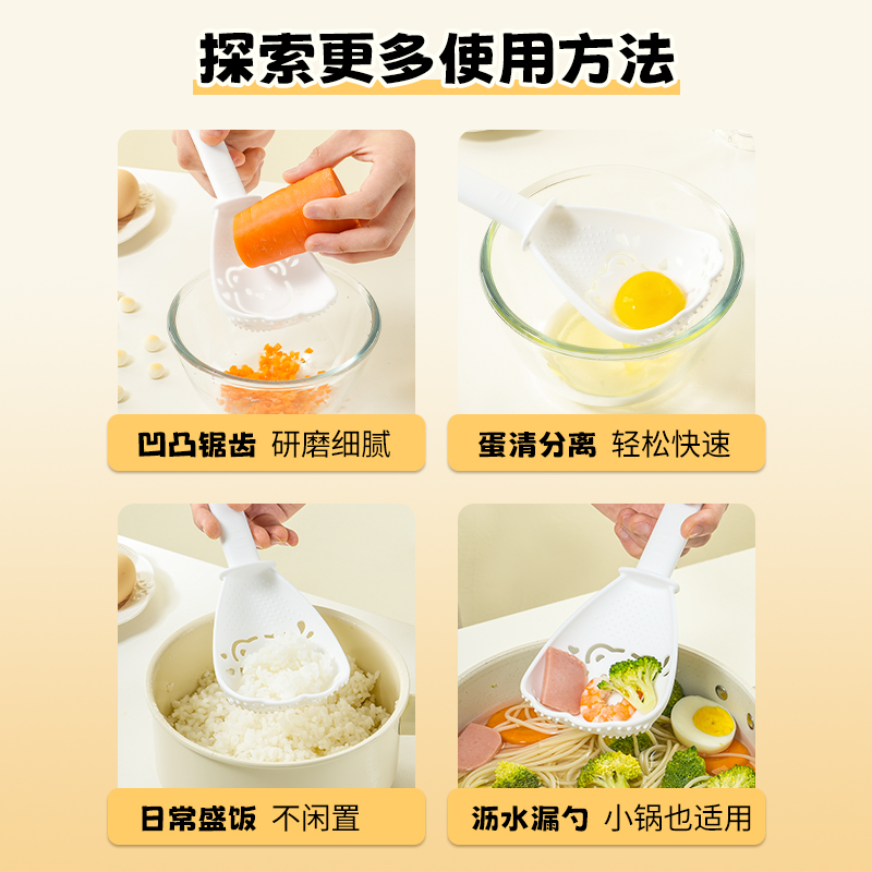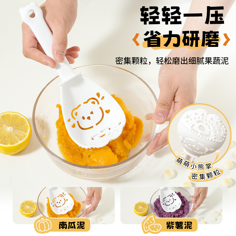 拜格多功能料理勺漏勺婴儿宝宝辅食工具食品级土豆压泥勺研磨捞勺