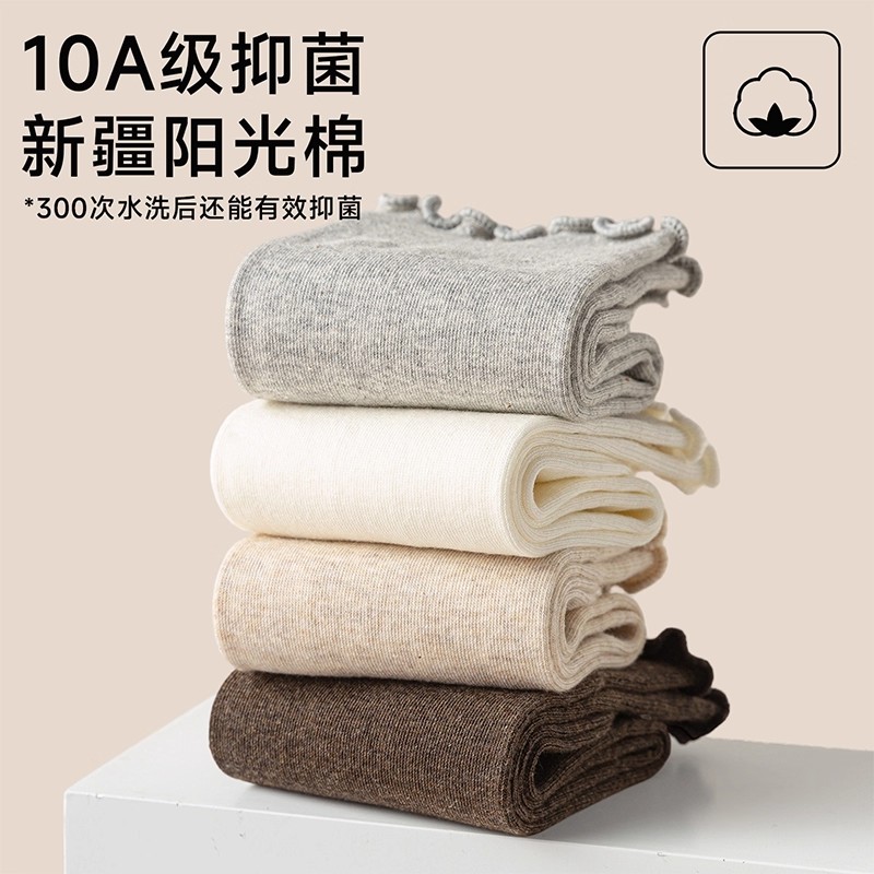 10A抗菌白色袜子女春秋纯棉中筒袜防臭堆堆无骨月子长筒袜秋冬季