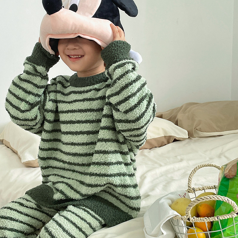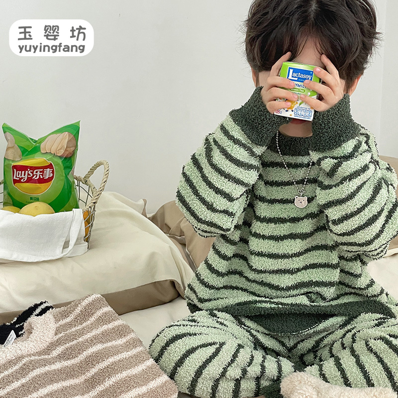 儿童厚 男童分体套装 宝宝加厚家居服小童半边绒睡衣秋冬款 2025新款