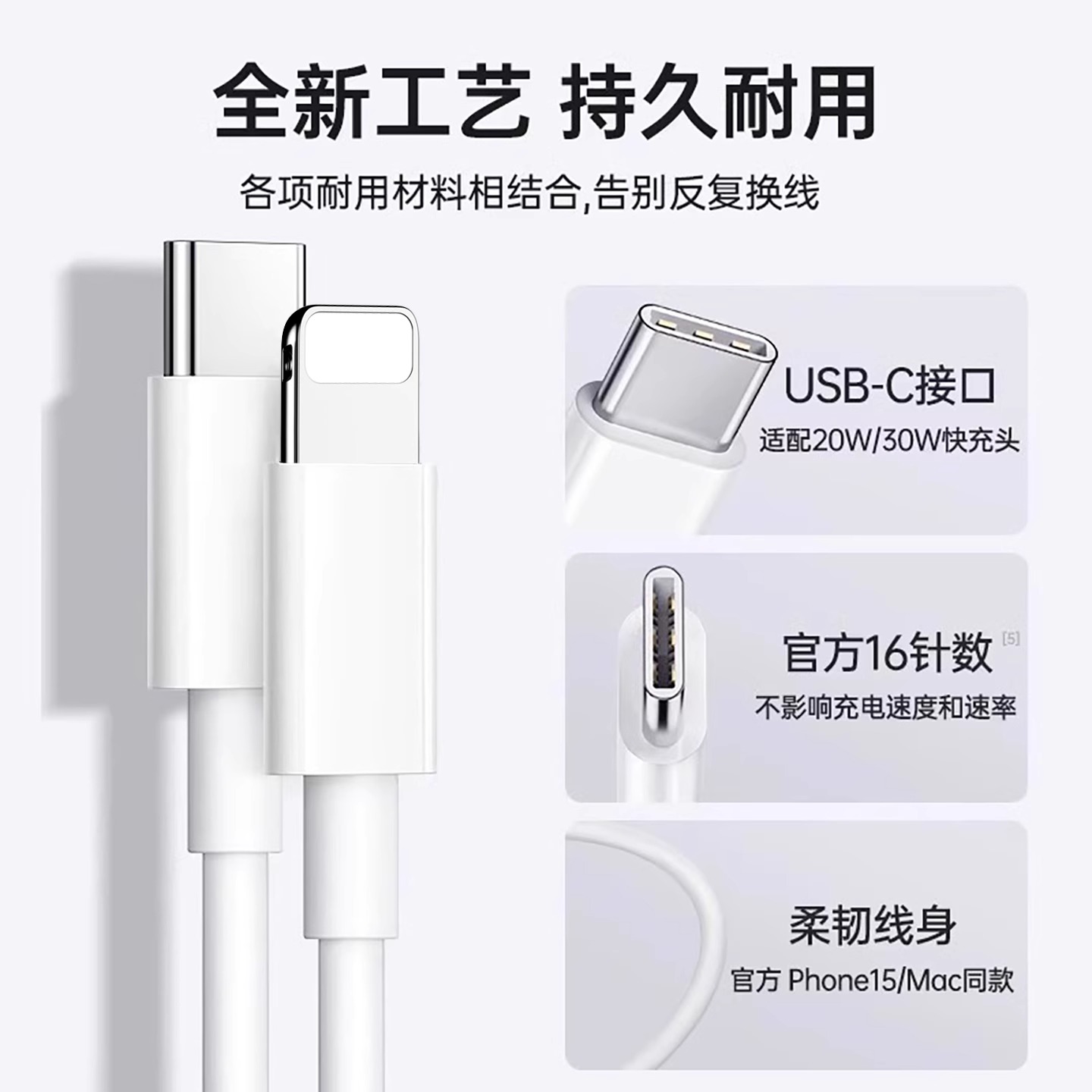闪冲套装 适用苹果iPhone14 15手机充电线PD20W快充xr8plus7p6s原数据线充电器插头ipad正品 13promax12pro