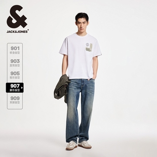 做旧贴布廓形牛仔裤 潮猫须水洗个性 子 夏季 杰克琼斯奥特莱斯男装