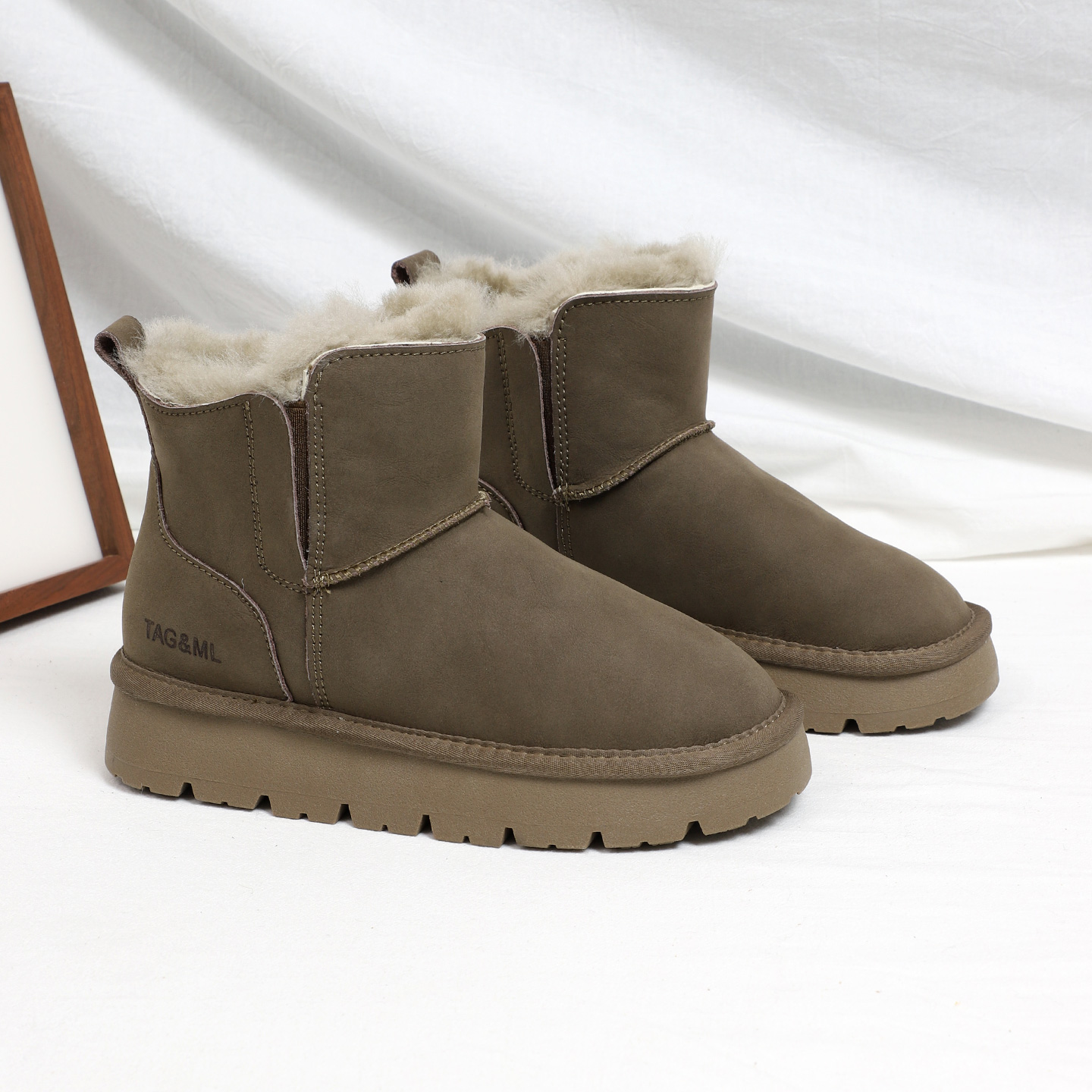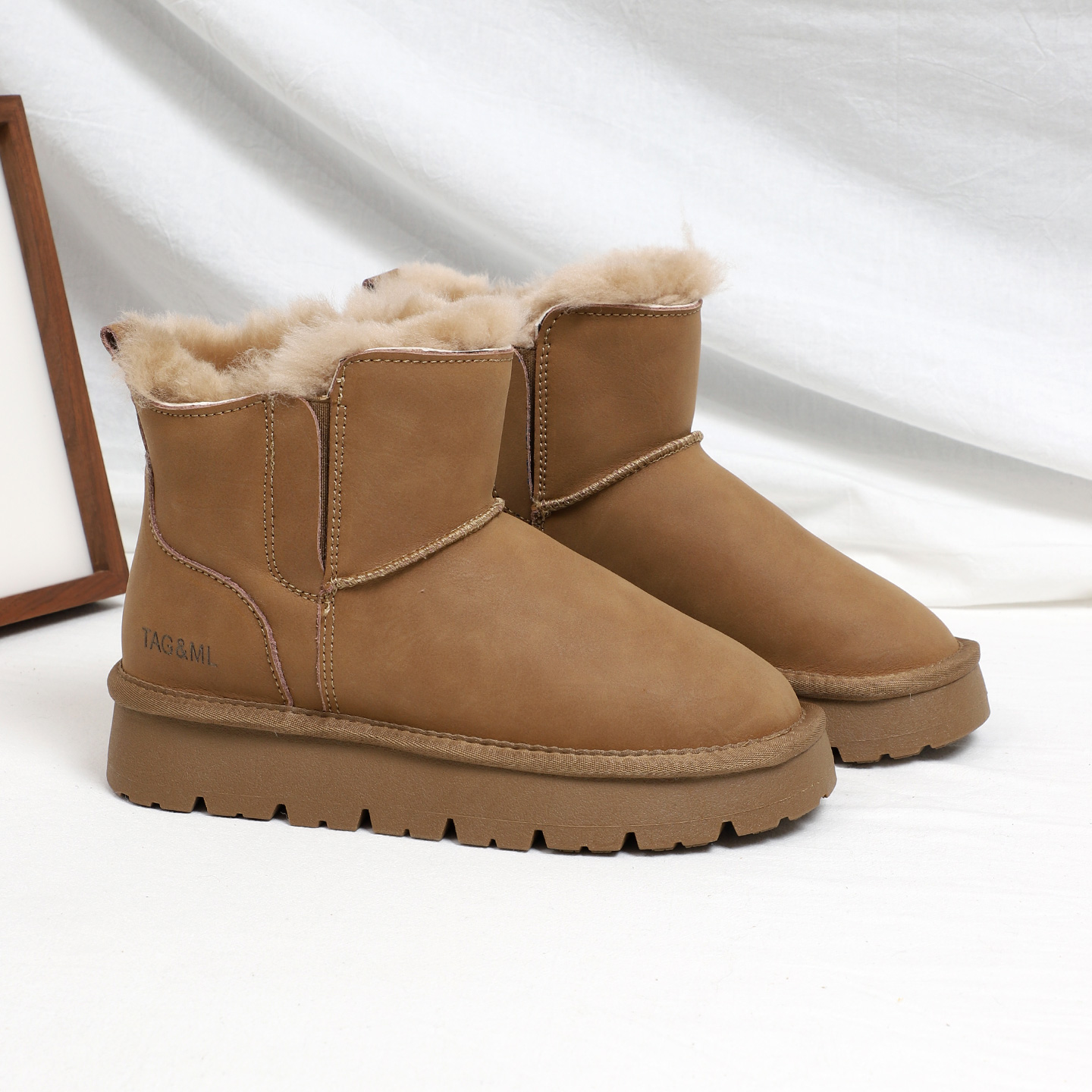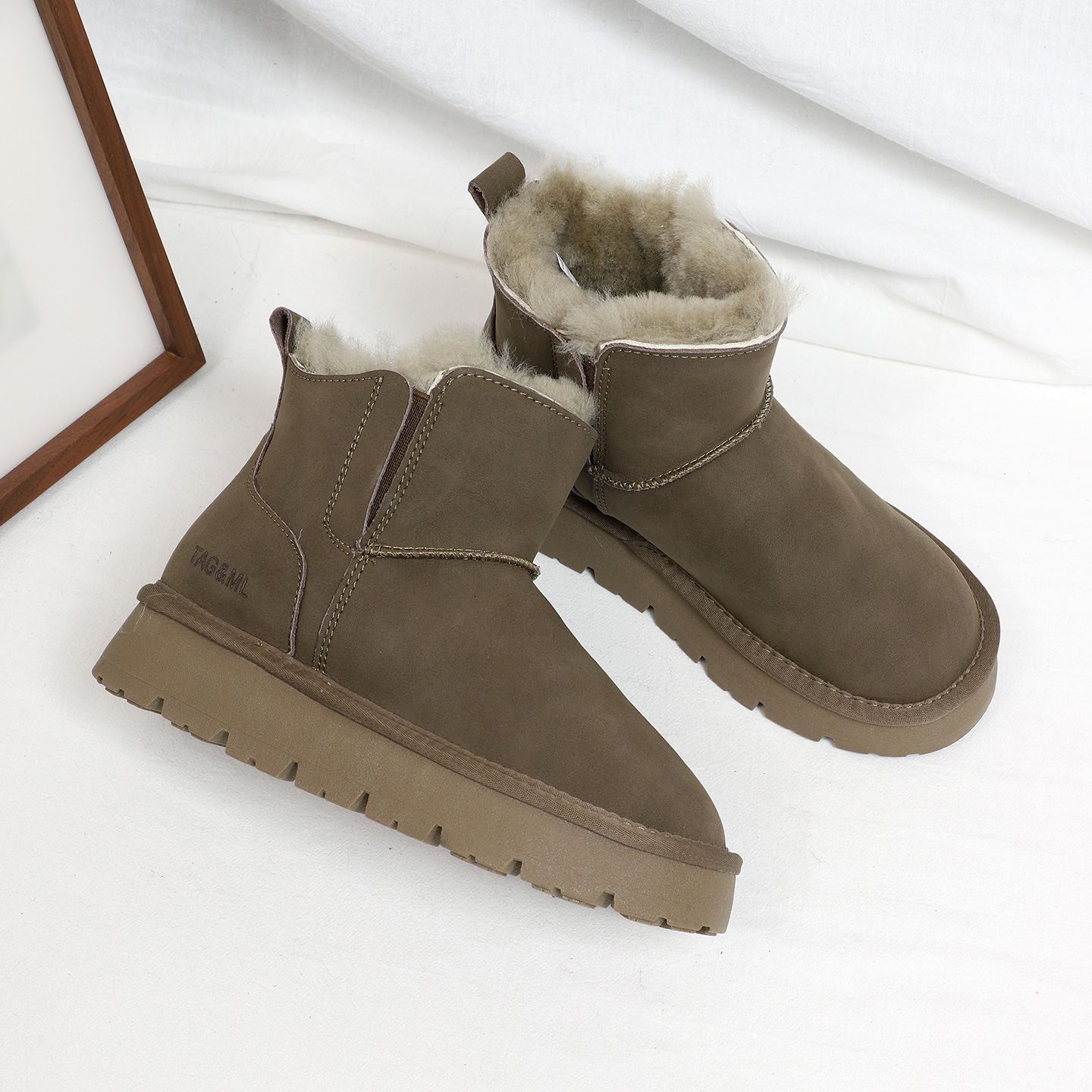 真皮毛一体短靴加厚保暖棉鞋 冬季 防水全羊毛套筒雪地靴女2025新款