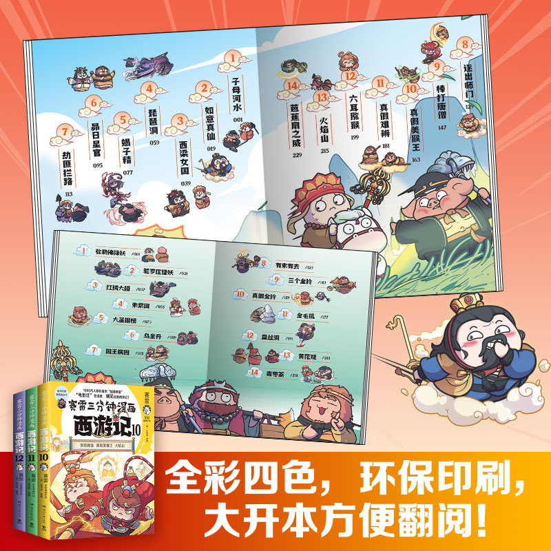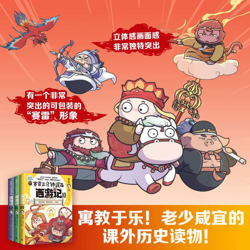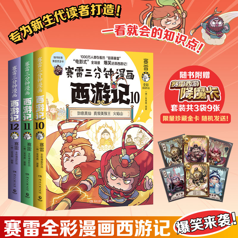 赛雷三分钟漫画西游记101112全套3册 降魔卡 印签 哪吒敖丙孙悟空塞雷3分钟漫画四大名著小学生连环画儿童漫画 赠专享人物立牌