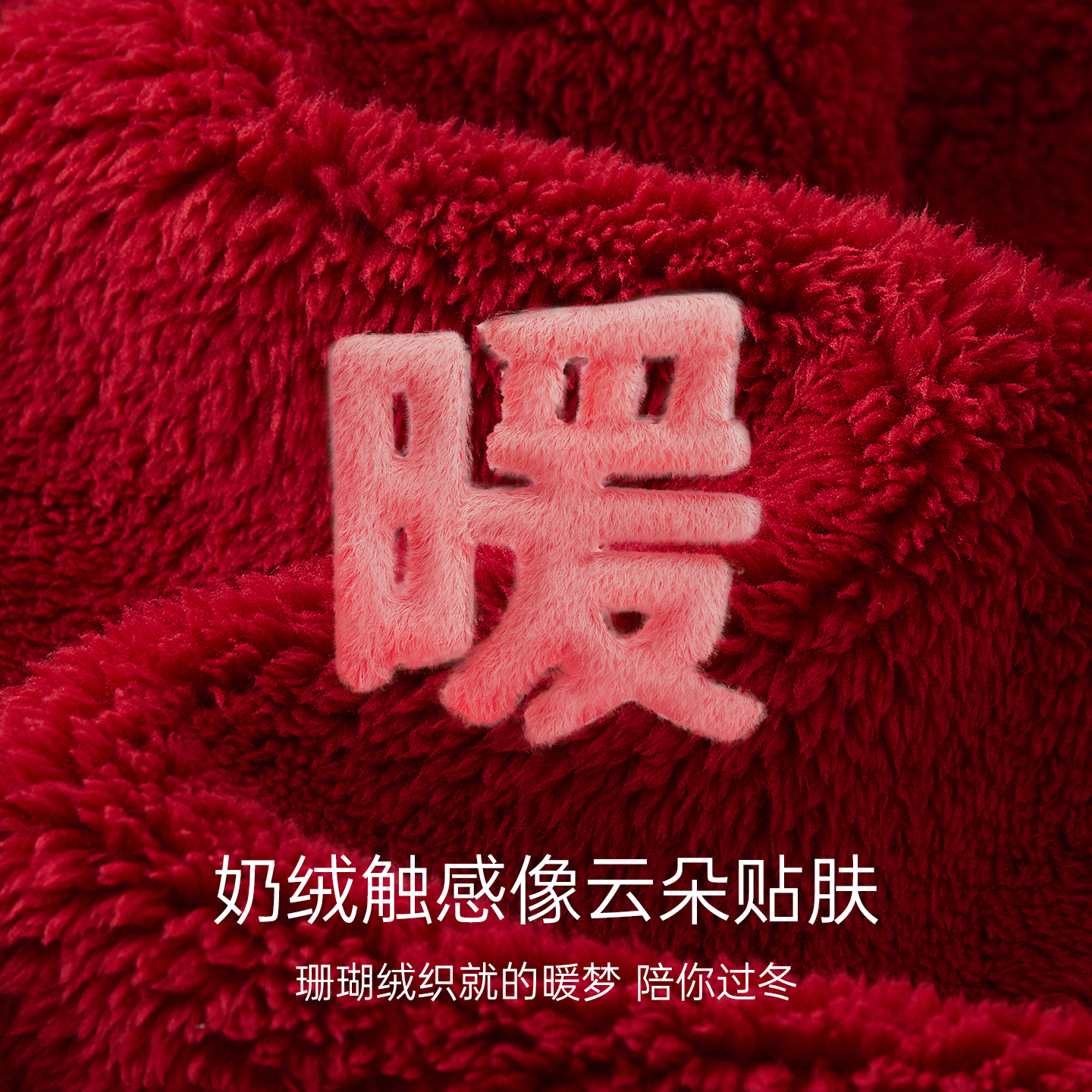 BE珊瑚绒红色睡袍女秋冬季 加绒加厚冬天连帽睡衣本命年浴袍可外穿