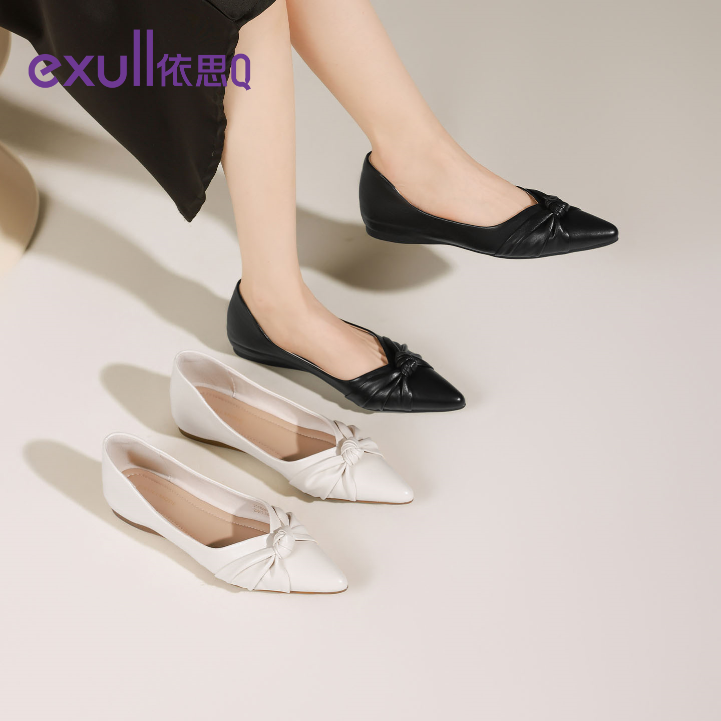 新款 女鞋 女士温柔蝴蝶结浅口单鞋 淑女平底单鞋 法式 热风2025年夏季