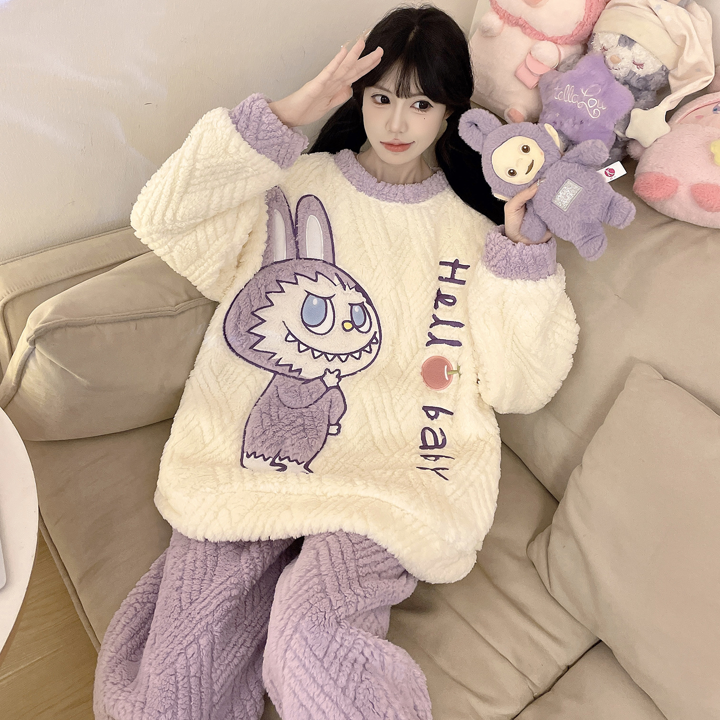甜美加绒保暖家居服套装 Gukoo 果壳睡衣女冬mikko款