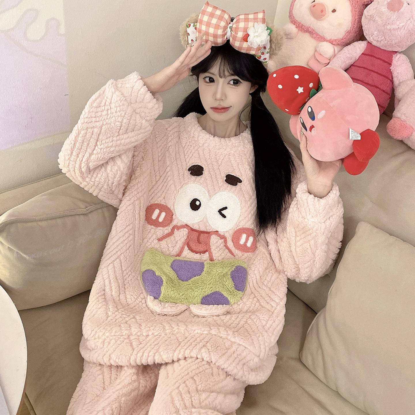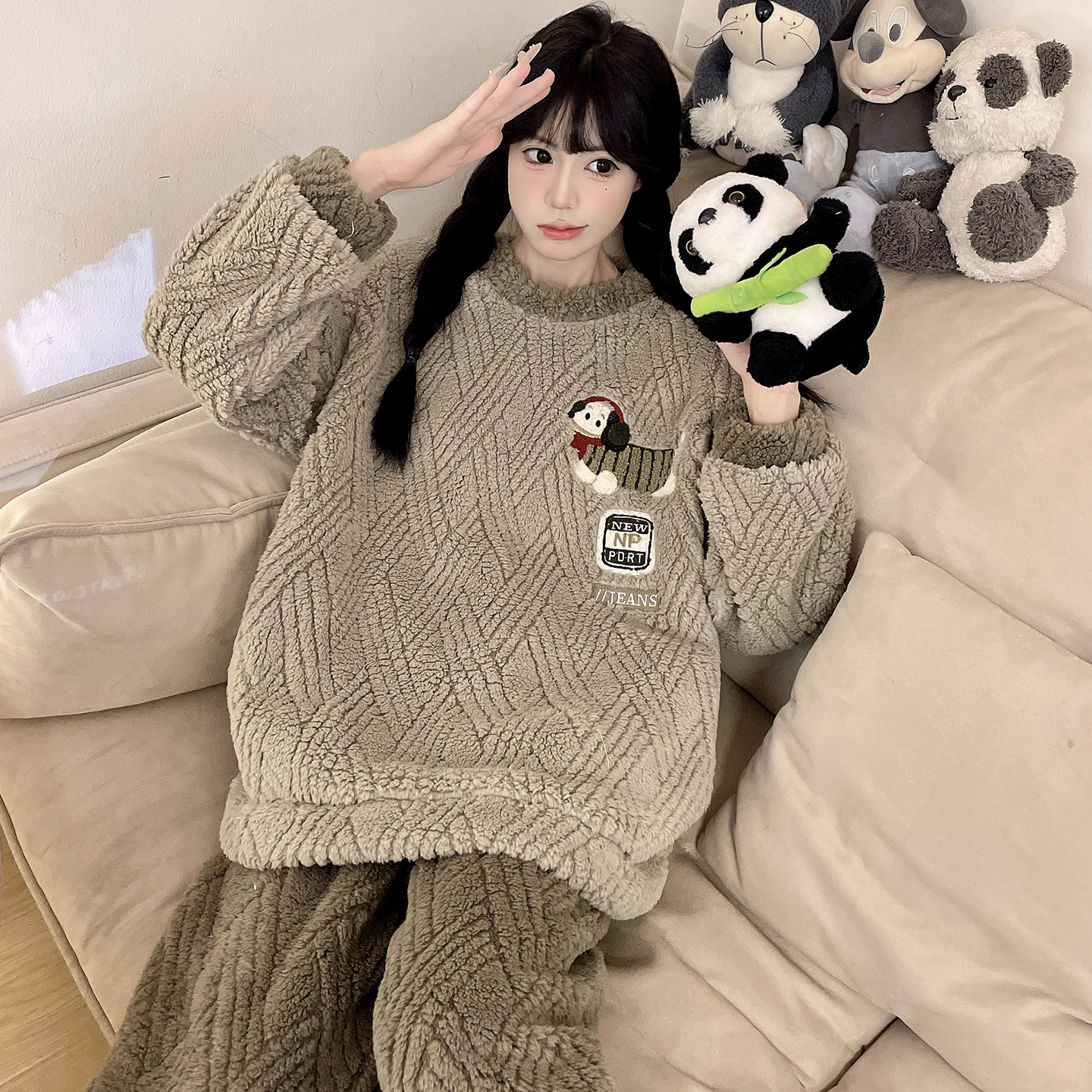 红豆珊瑚绒睡衣女羊羔绒抗静电加厚桂花绒甜美保暖外穿家居服套装