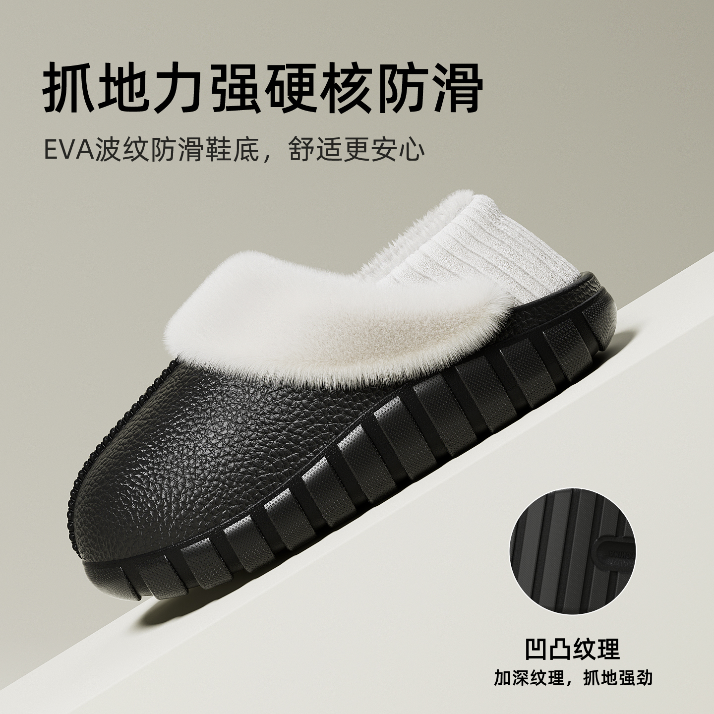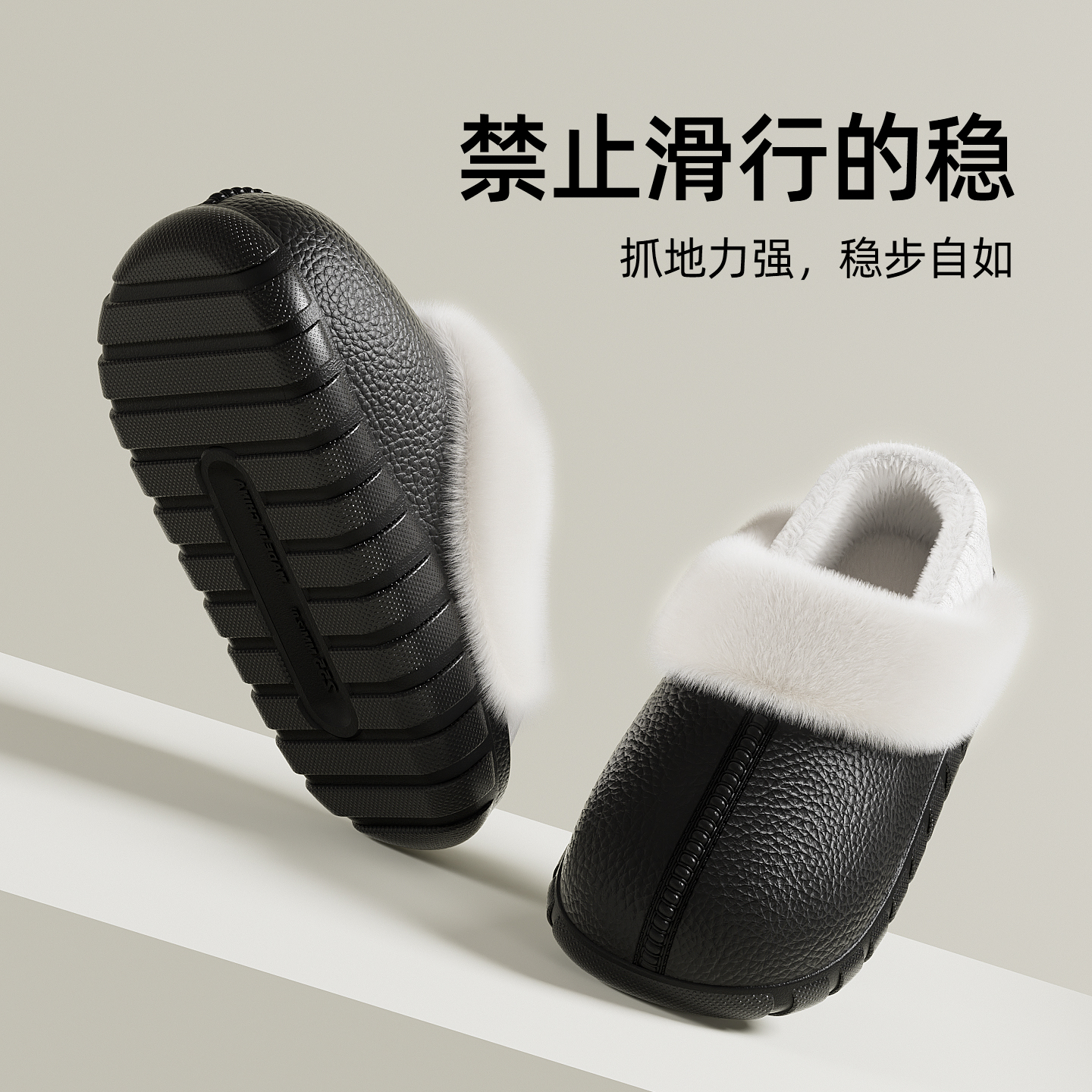 女 棉拖鞋 外穿厚毛绒包跟棉鞋 男室内保暖防滑柔软轻便防水情侣冬季