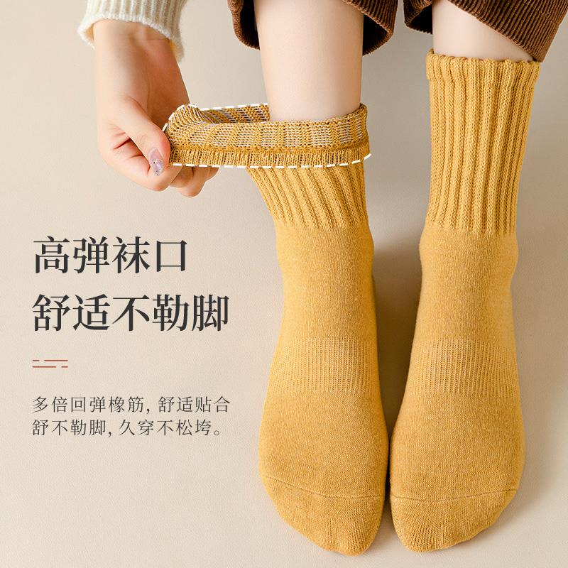 袜子女中筒袜冬季 加绒加厚纯棉毛巾底保暖棉袜秋冬ins潮运动长袜