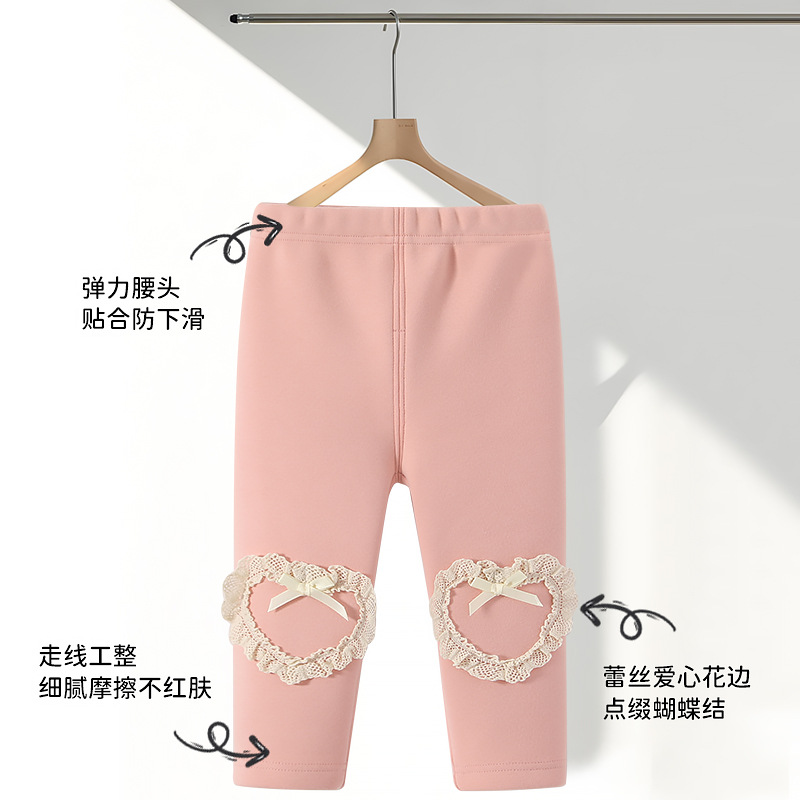 子儿童爱心外穿开裆长裤 3岁小童裤 2026秋冬宝宝0 女童加绒打底裤