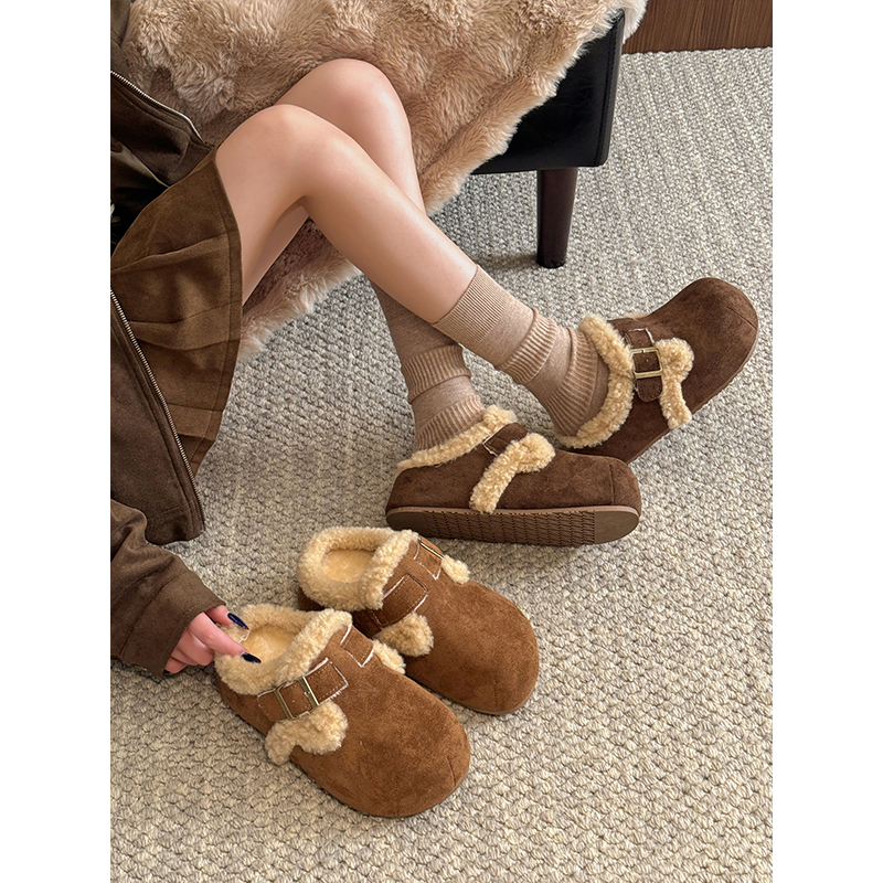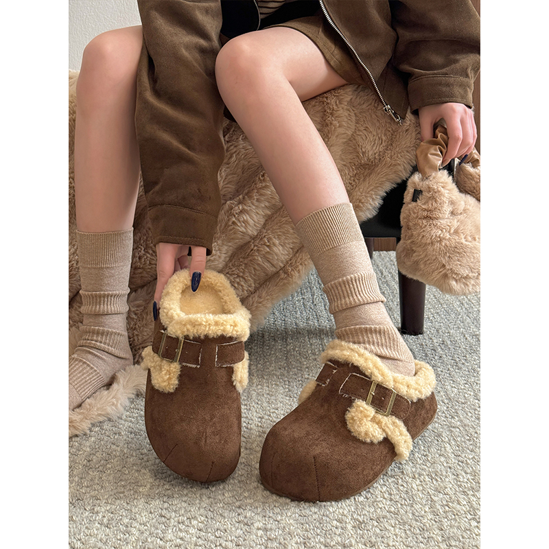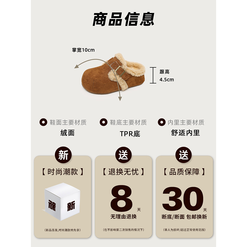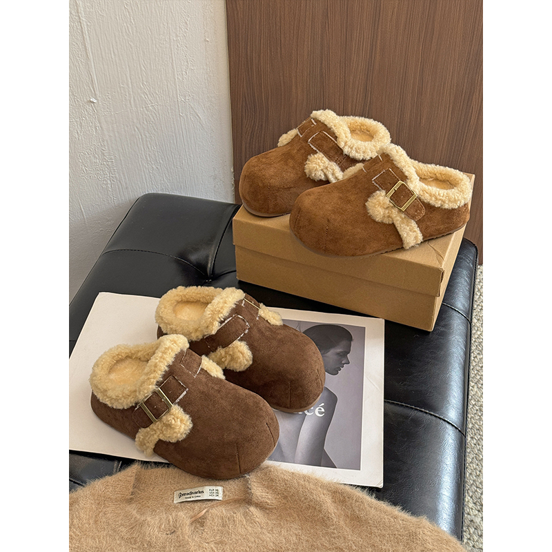 一脚蹬加绒棉拖鞋 厚底勃肯鞋 秋冬爆款 女外穿2025新款 包头毛毛拖鞋