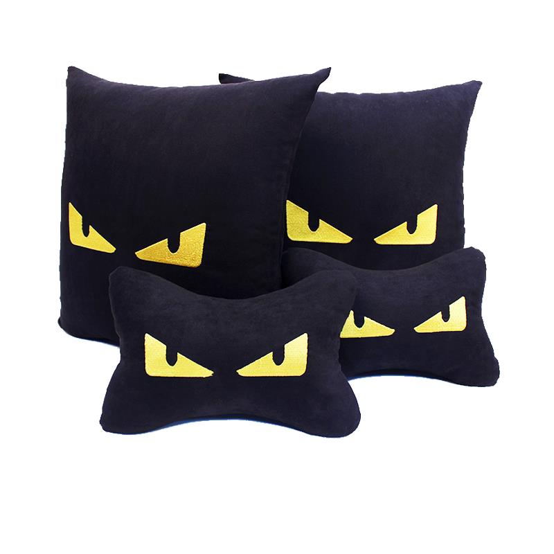 车用头枕抱枕四件套汽车枕头枕一对车内颈枕绣花小怪兽汽车靠枕