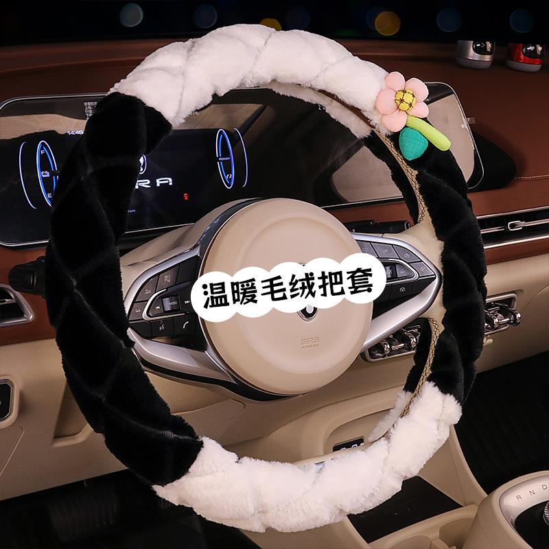 适用比亚迪宋plus方向盘套冬季 饰ev用品女保暖把套 毛绒dmi车内装