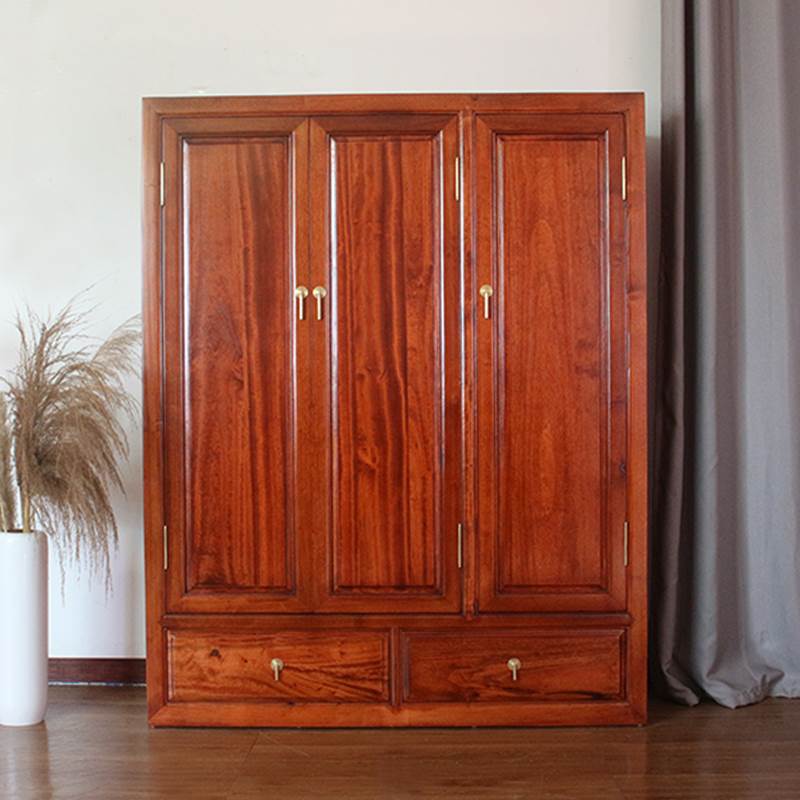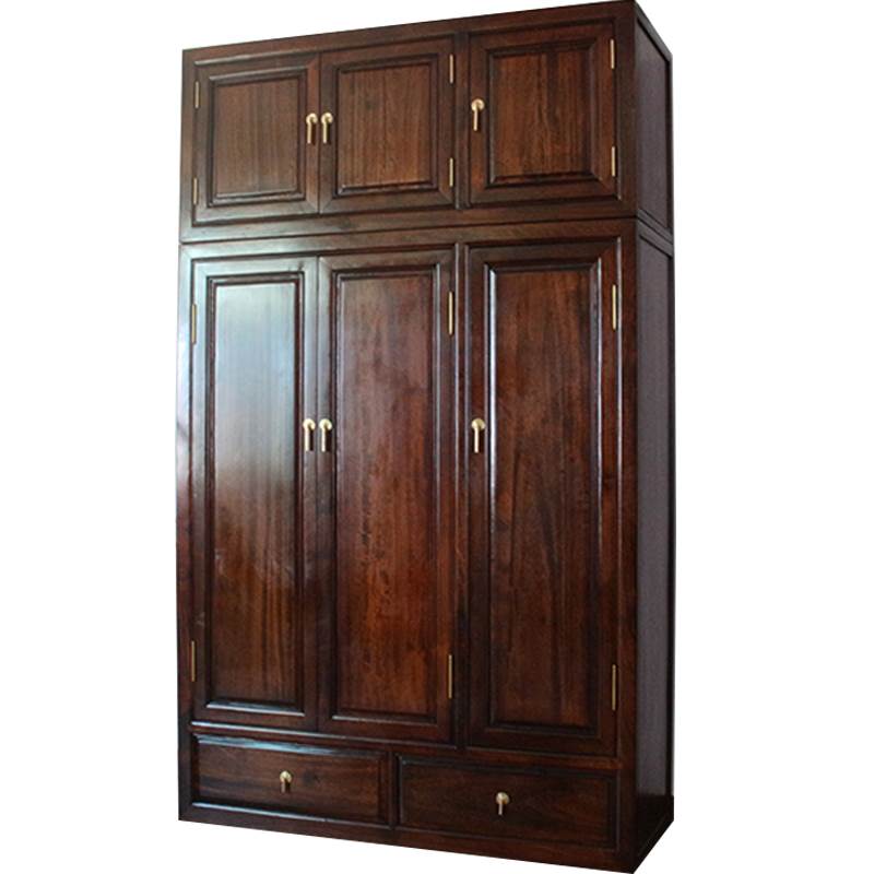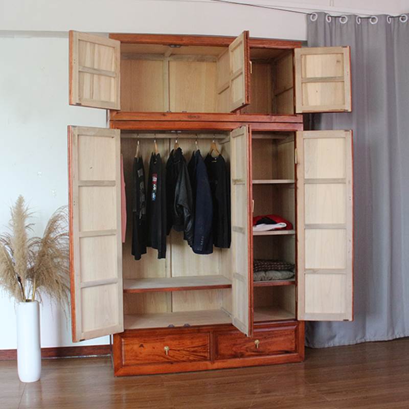新中式 香樟木三门双门衣柜全实木卧室顶箱柜整体衣橱大容量收纳柜