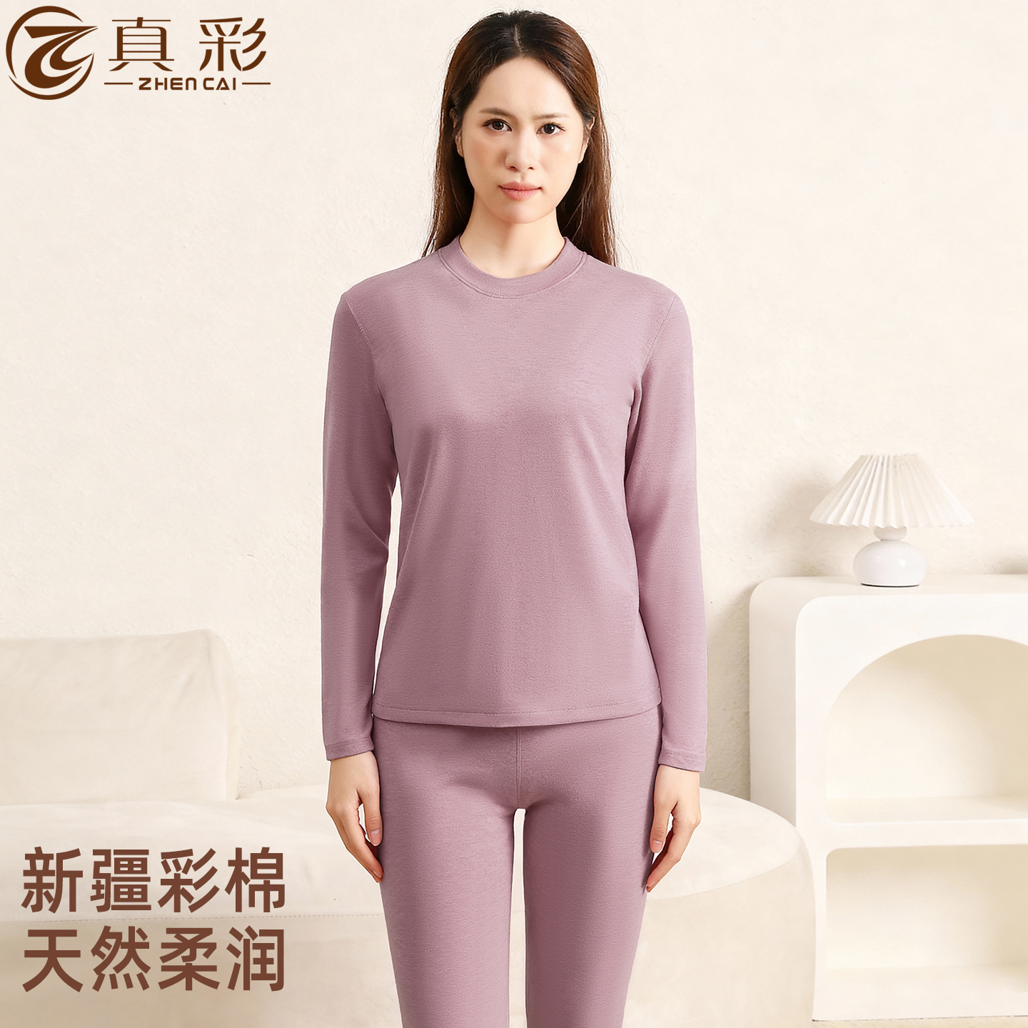 彩棉舒绒磨毛绒纯棉肌底秋衣秋裤 真彩保暖内衣女套装 2025秋冬新款