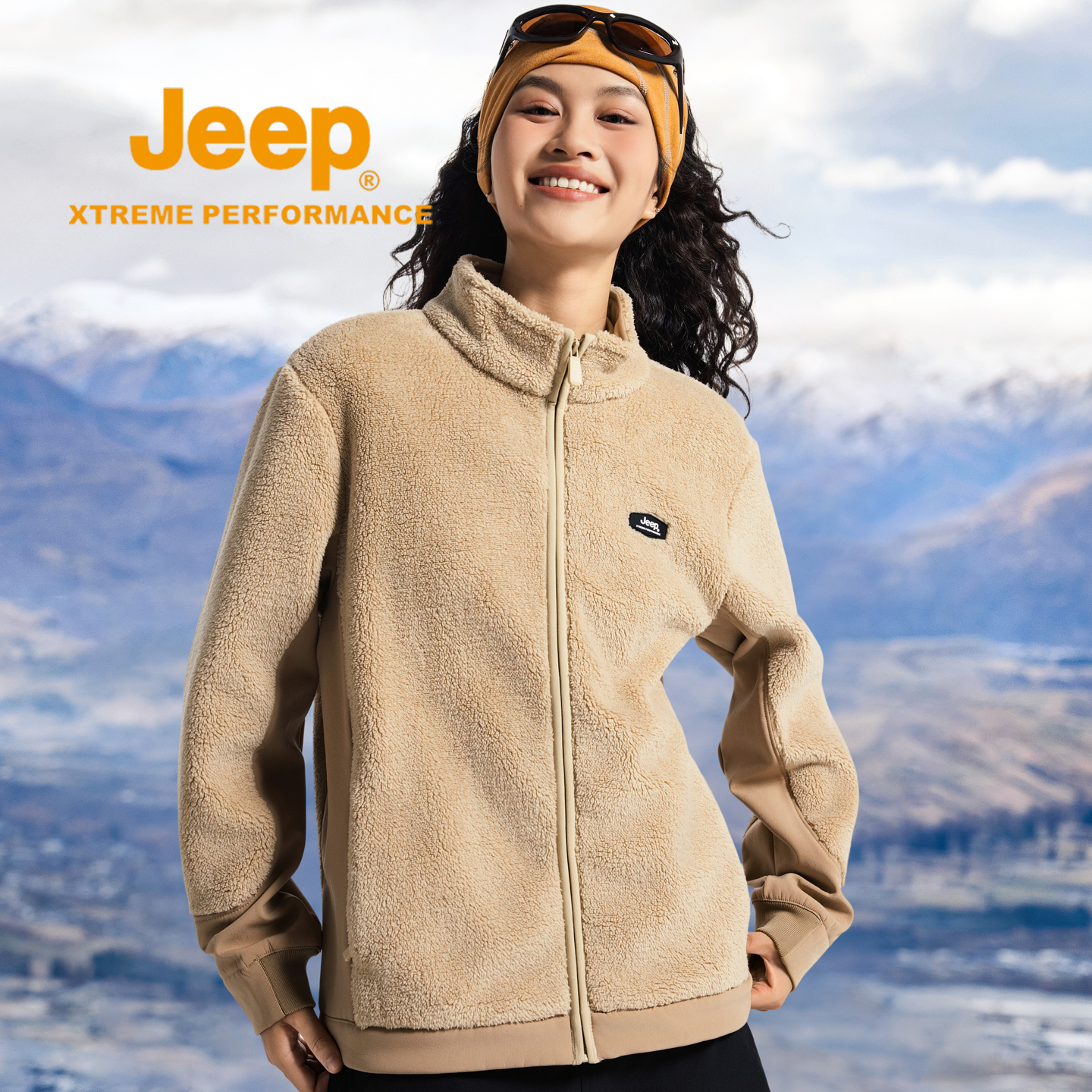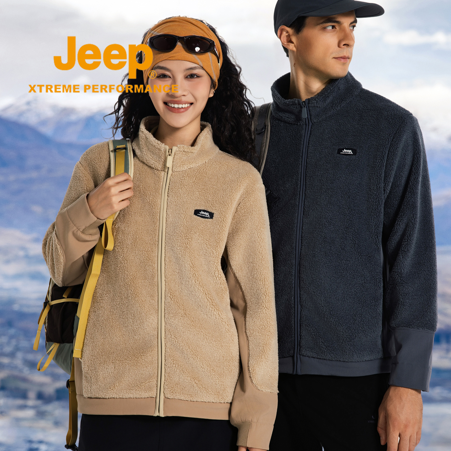 Jeep户外抓绒衣男款 官网旗舰加厚保暖轻便透气羊羔绒休闲外套 冬季