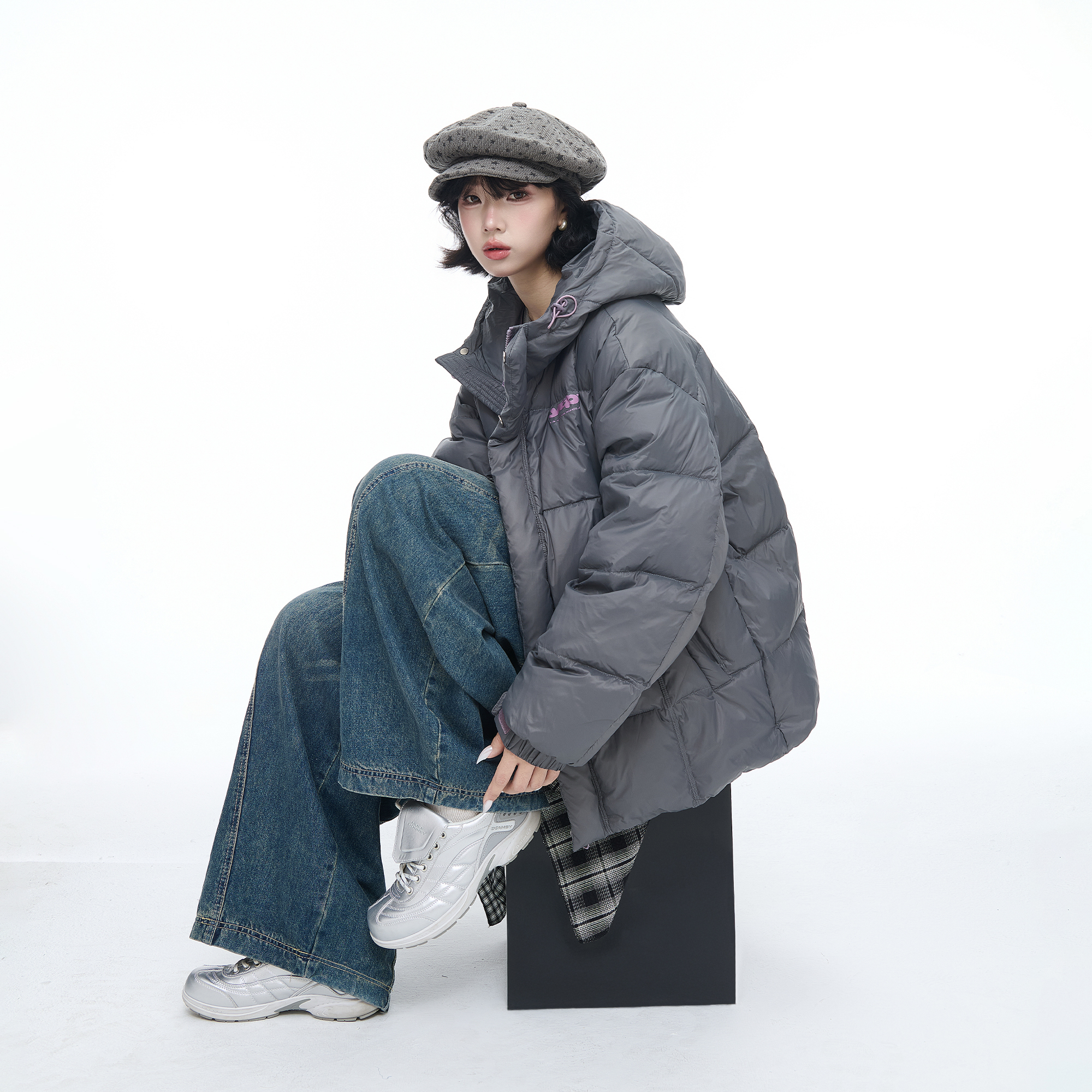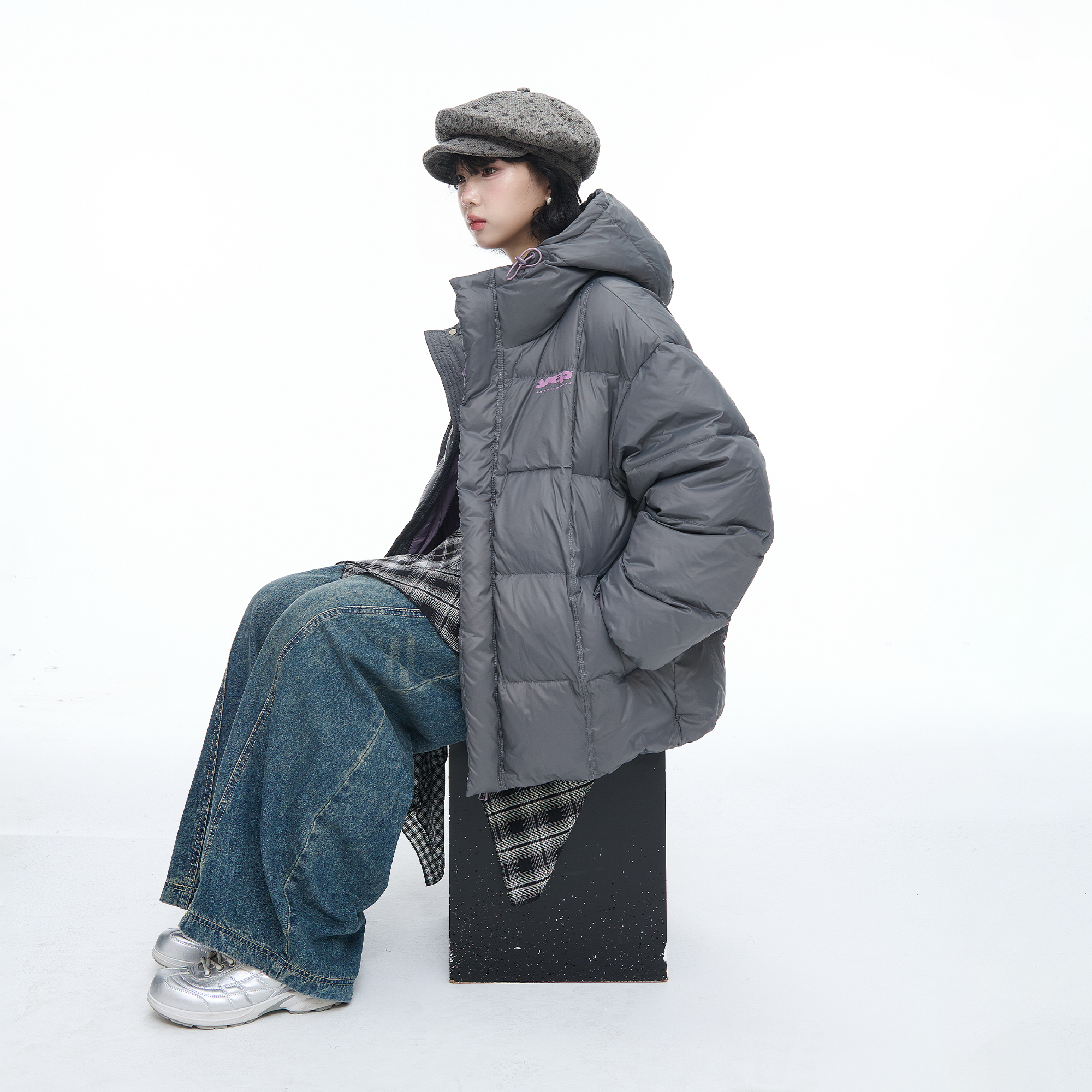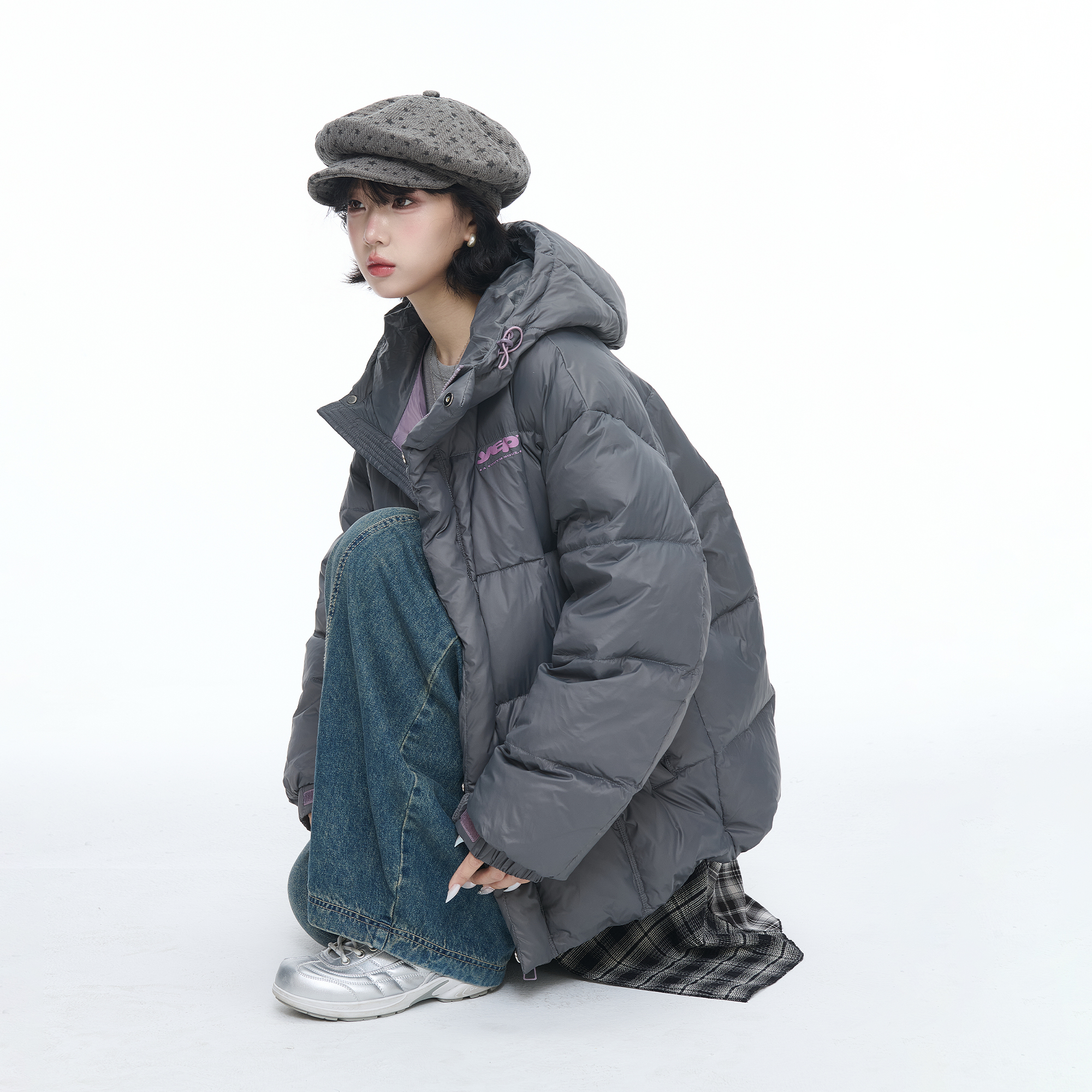 复古90白鸭绒保暖面包服情侣款 连帽羽绒服女美式 外套 新款 2025冬季