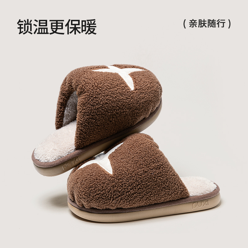 2025新款 朴西卡通可爱香菇棉拖鞋 女士家居保暖毛毛防滑情侣秋冬季