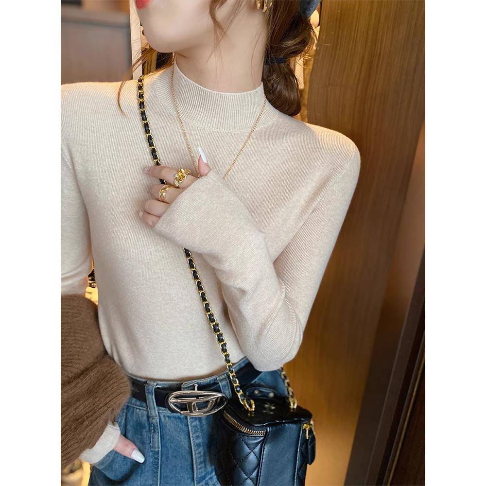蓝色半高领针织打底衫 内搭气质中领毛衣上衣1017u 女秋冬新款