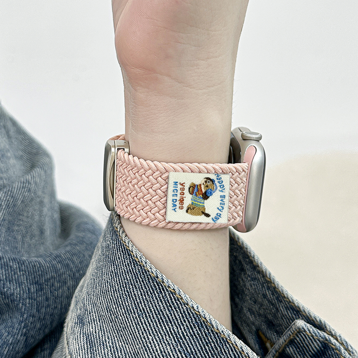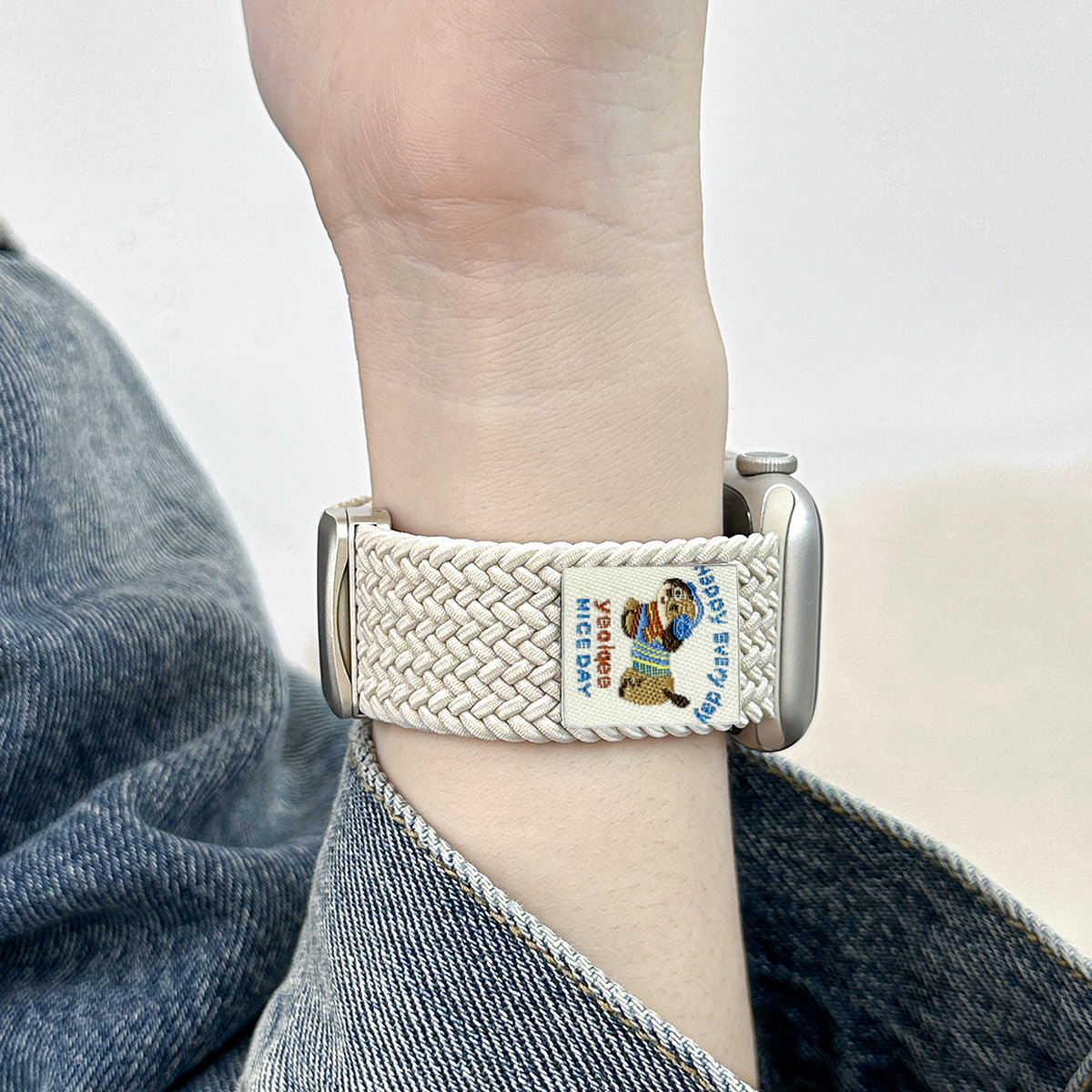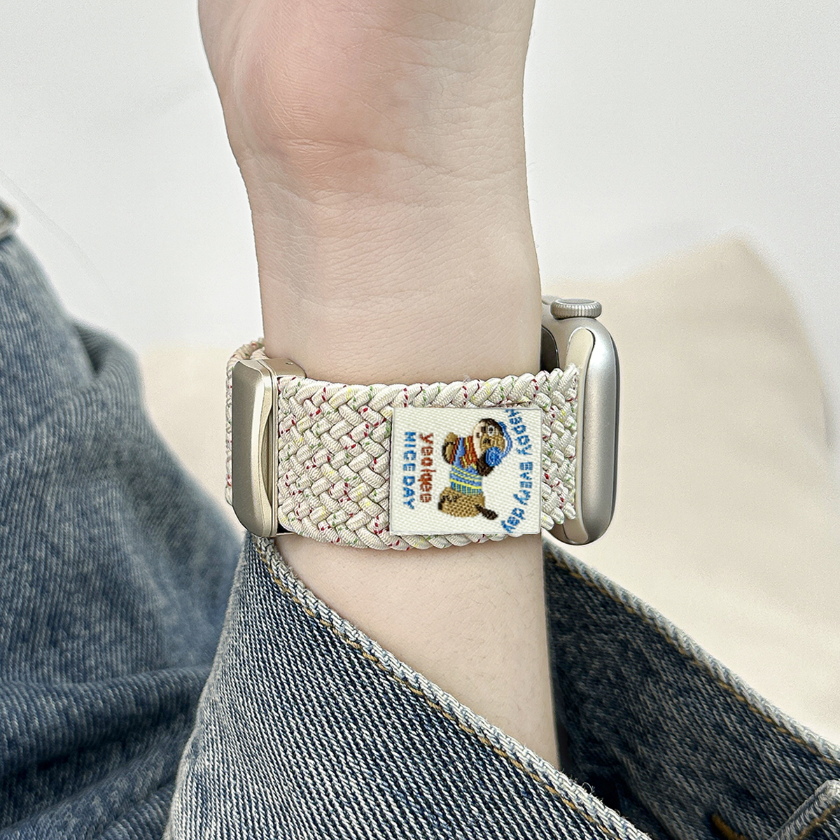 S10 适用applewatch磁吸扣表带刺绣尼龙弹力编织iwatch 6苹果手表ultra2可爱印花回环腕带 腊肠小狗