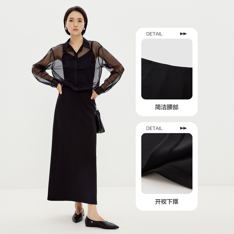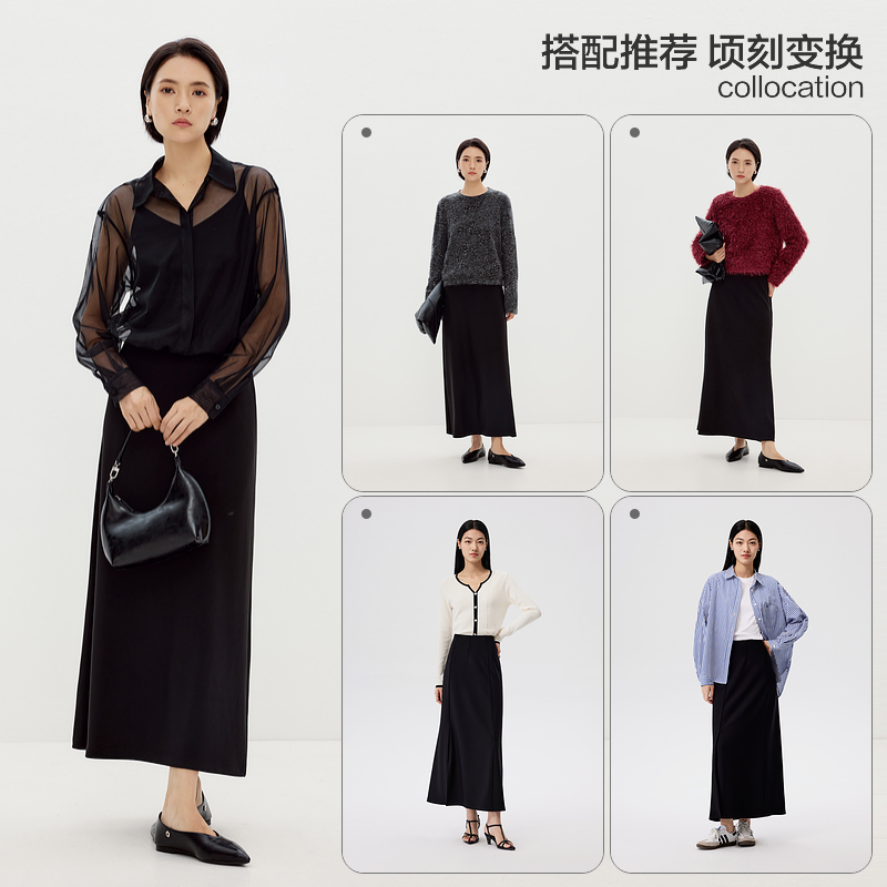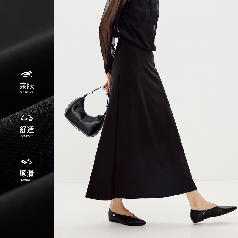 轻职场2025秋新款 水云间黑色H型直筒半身裙女简约西装 裙子中长款