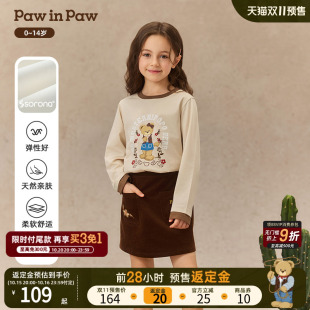女童女宝宝长袖 25年秋冬新款 PawinPaw卡通小熊童装 T恤 预售