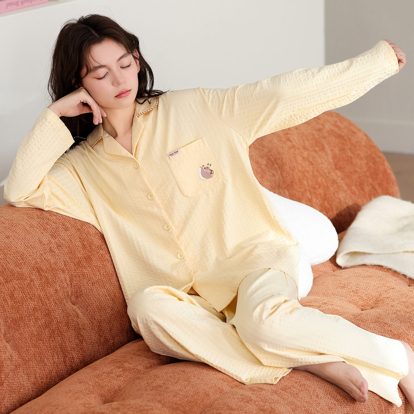 芬腾纯棉少女睡衣春秋长袖 甜美可爱亲肤透气外穿家居服2025年 长裤