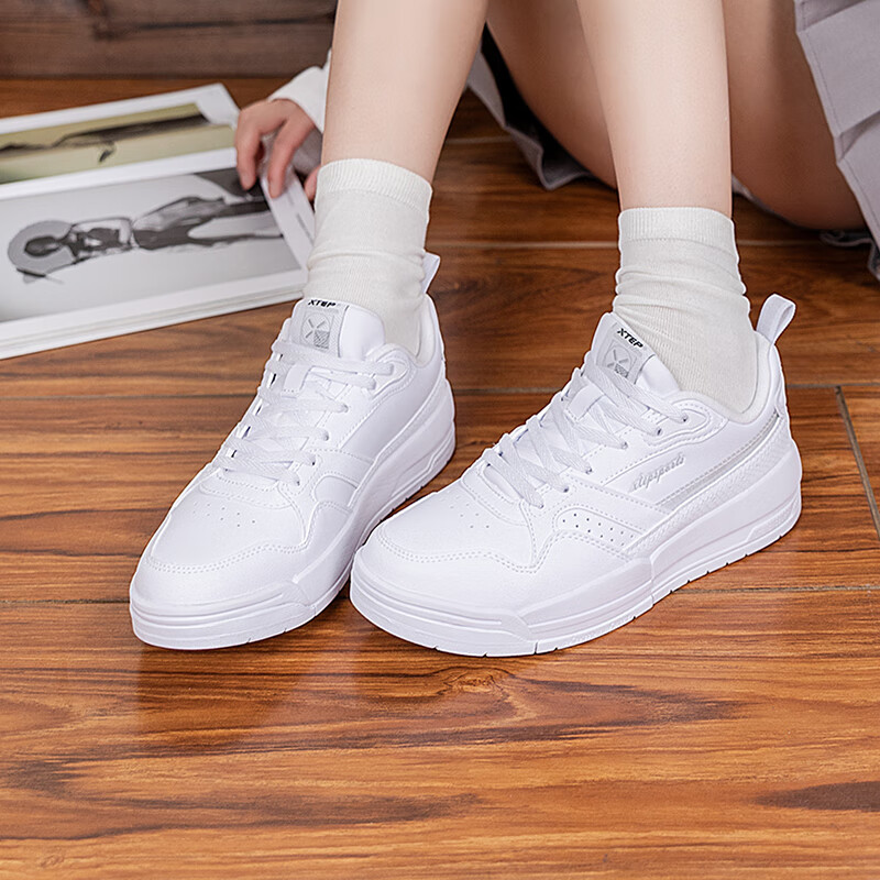 女士轻便复古休闲鞋 板鞋 子秋季 新款 特步女鞋 皮面小白鞋 官方正品