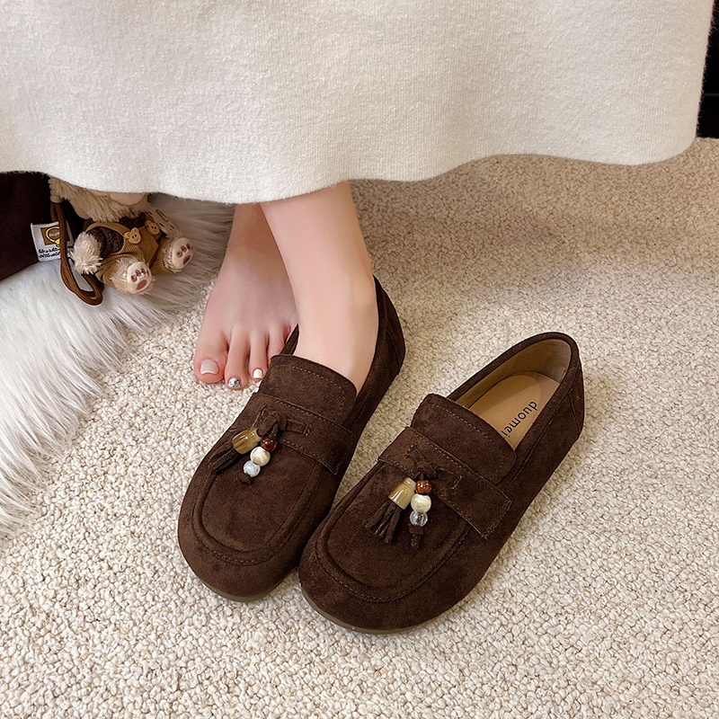 一脚蹬平底乐福鞋 女2025春秋新款 潮流 舒适串珠流苏勃肯单鞋 时尚