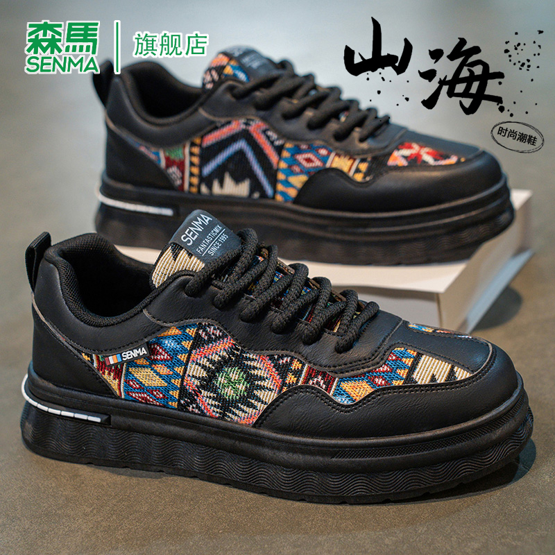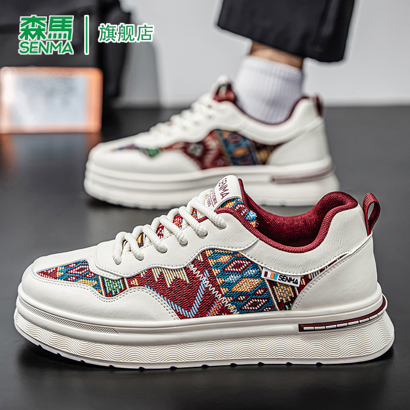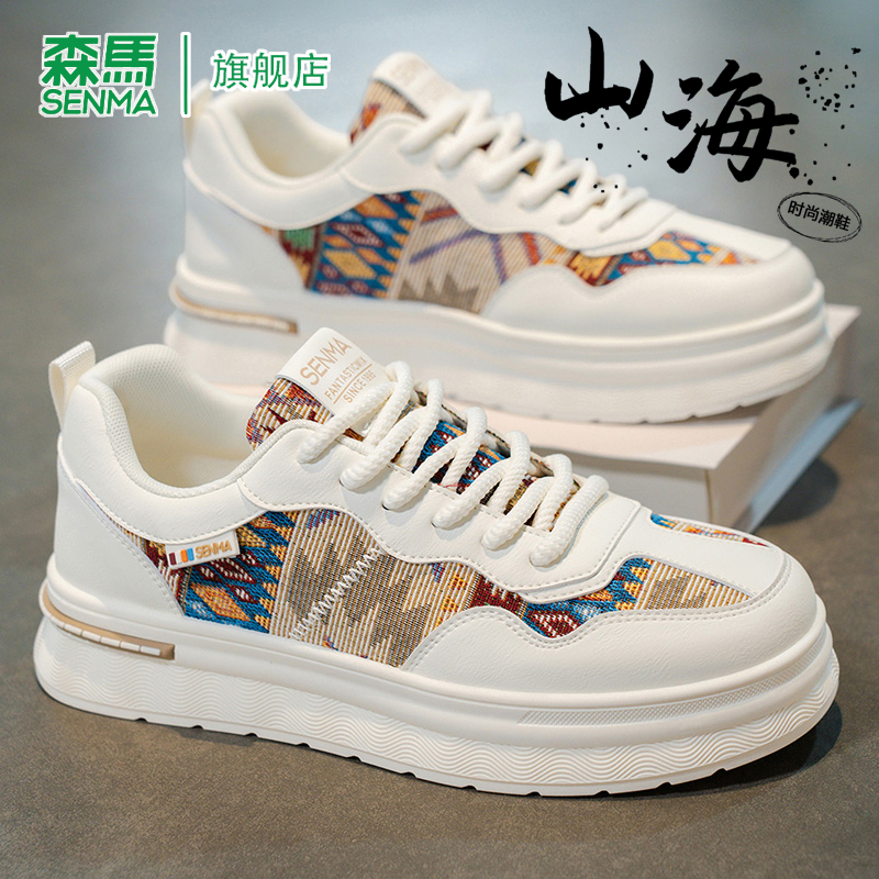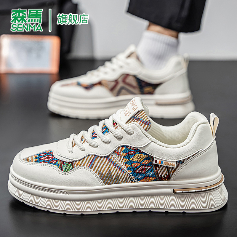 厚底真皮潮流刺绣青少年运动小白鞋 森马休闲板鞋 新款 2025秋季 男款