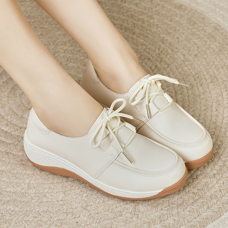 春秋软底不脚通勤上班皮鞋 真皮休闲乐福鞋 女厚底增高中年妈妈单鞋
