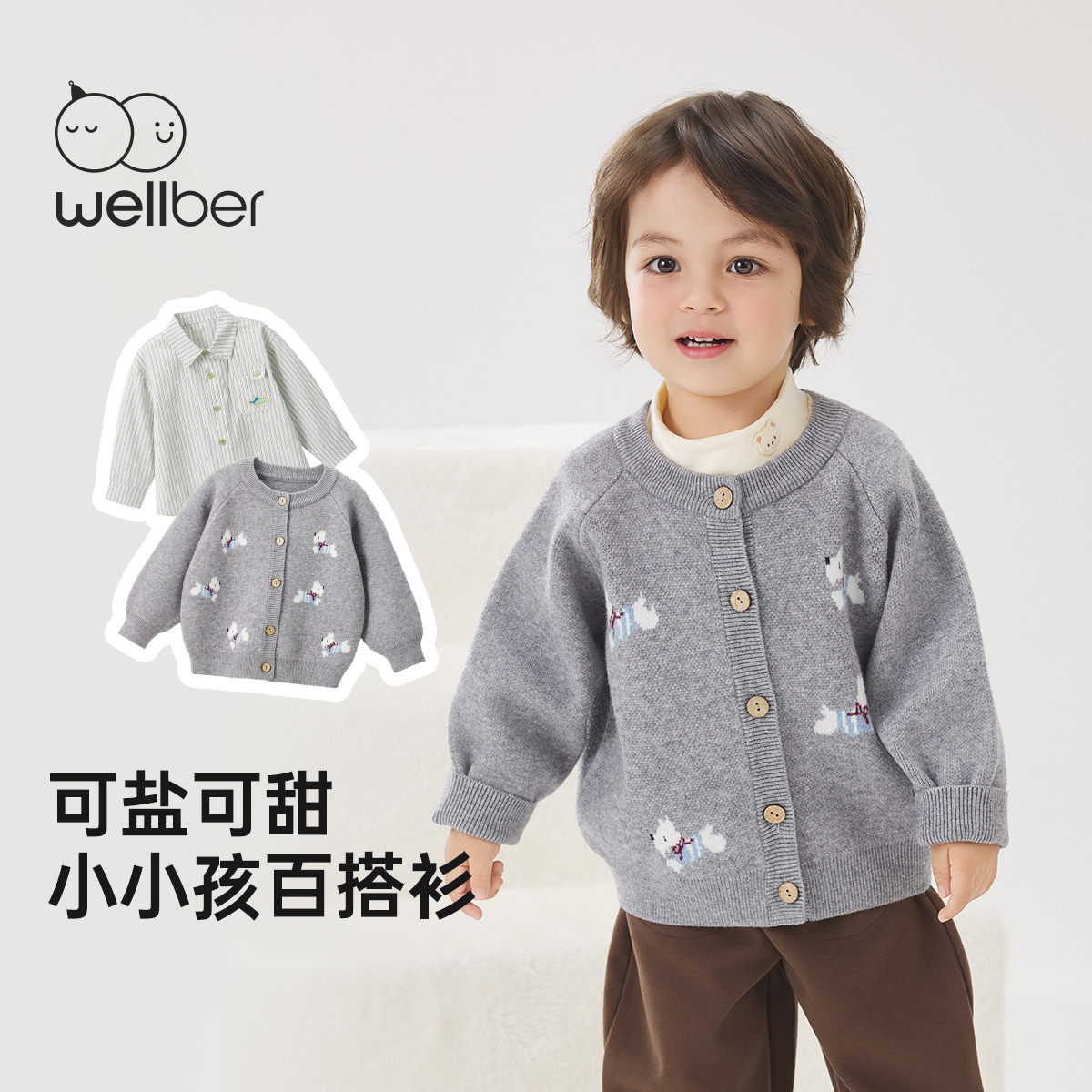 TeenieWeenie小熊女装 软外套 毛衣秋舒适学院风绵羊毛绞花针织开衫
