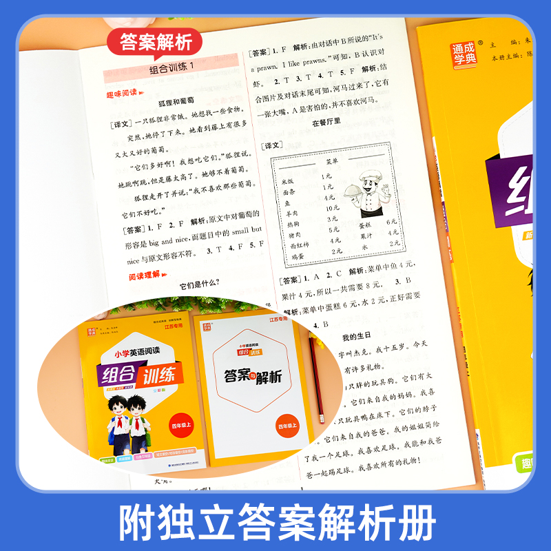 2025小学英语阅读组合训练四年级上册江苏专用4上英语全彩版 趣味阅读阅读理解任务型阅读短文对话完形填空通成学典
