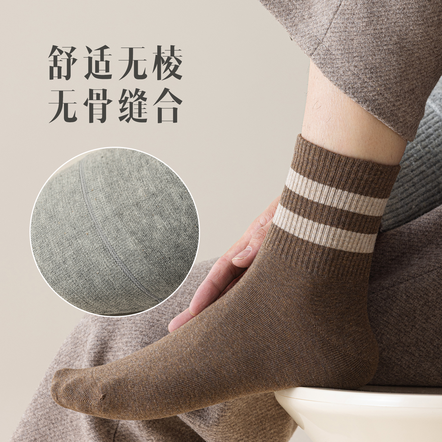 棉伙棉伴海藻袜舒适抗菌防臭男女商务运动纯色裸感中筒袜