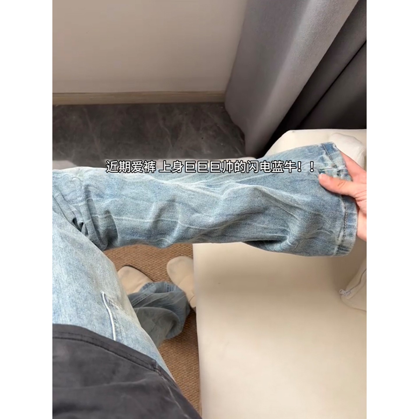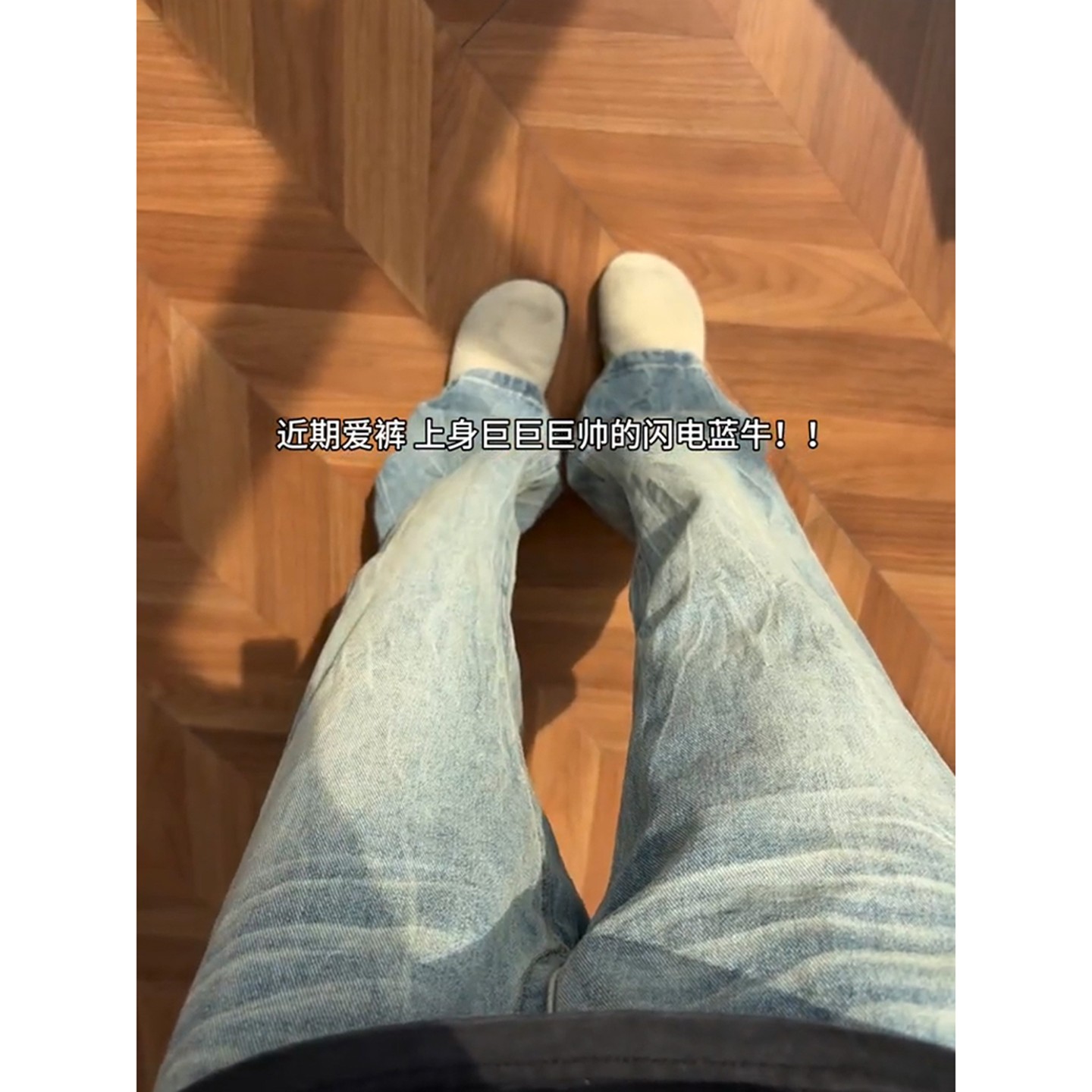 高街vibe裤 美式 子窄版 不贴腿修身 冰川蓝闪电纹牛仔裤 微喇裤 男秋季