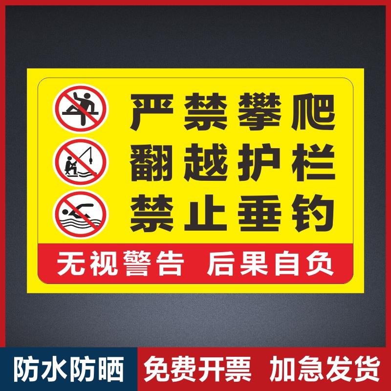 严禁攀爬翻越护栏禁止垂钓禁止游泳注意安全请勿靠近警示提示标识牌挂牌墙贴水深危险严禁游泳安全标识警示牌