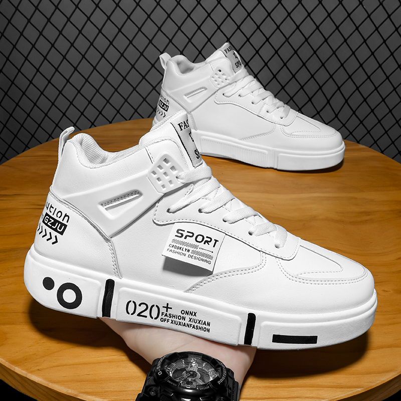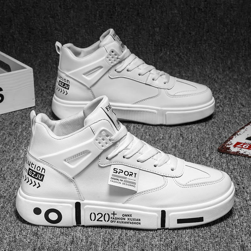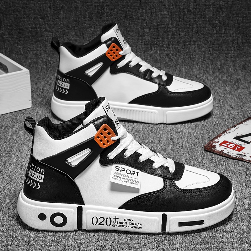 男鞋 子学生运动鞋 新款 皮面鞋 秋冬高帮休闲鞋 电池熊猫鸿星尔克板鞋
