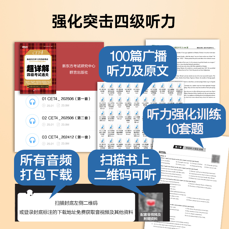 备考2025年12月 大学四六级历年真题超详解模拟试卷词汇书单词阅读理解听力翻译作文专项预测训练资料 新东方四级英语考试真题