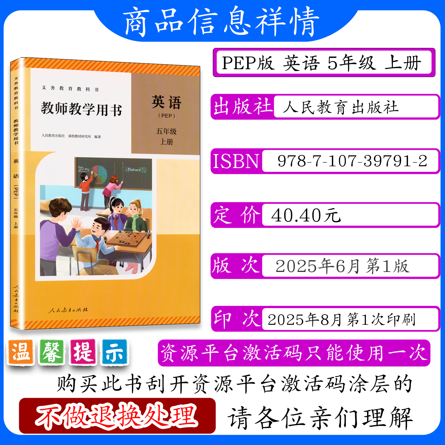 5年级上册人教版 教师用书英语PEP版 pep教师教学用书小学5年级上学期英语五年级上册老师备课教学参考指导老师教案教科书 2025新版