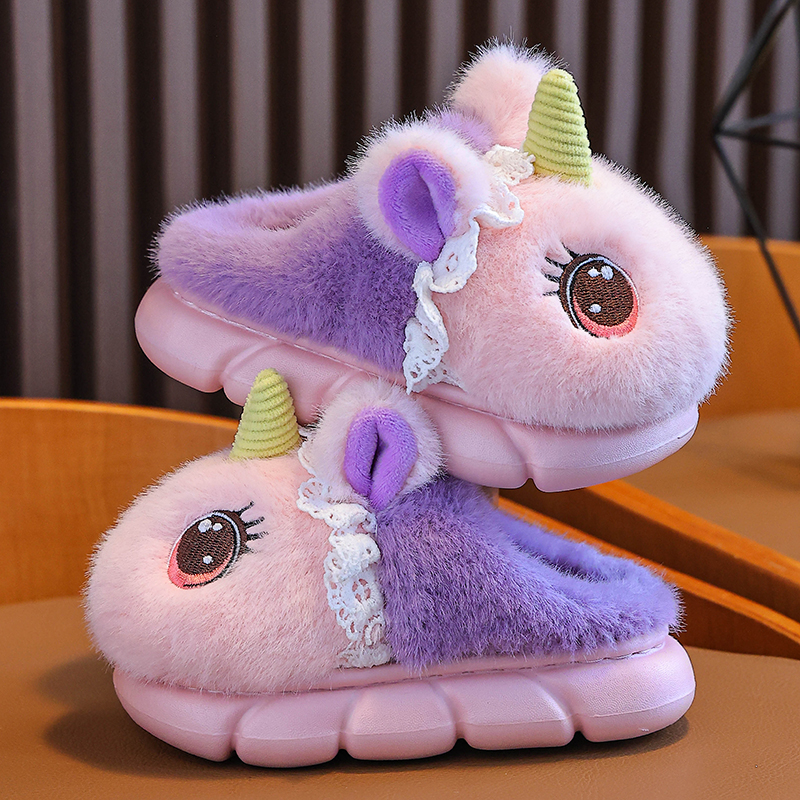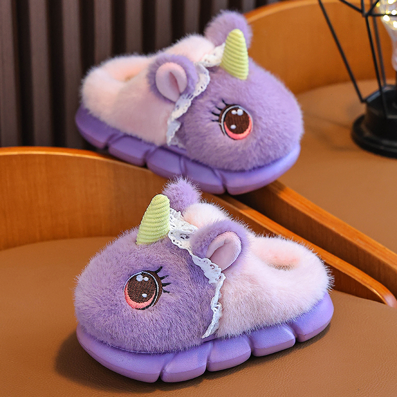 室内家居加绒防滑宝宝棉拖鞋 可爱独角兽儿童棉拖鞋 新款 2025秋冬季