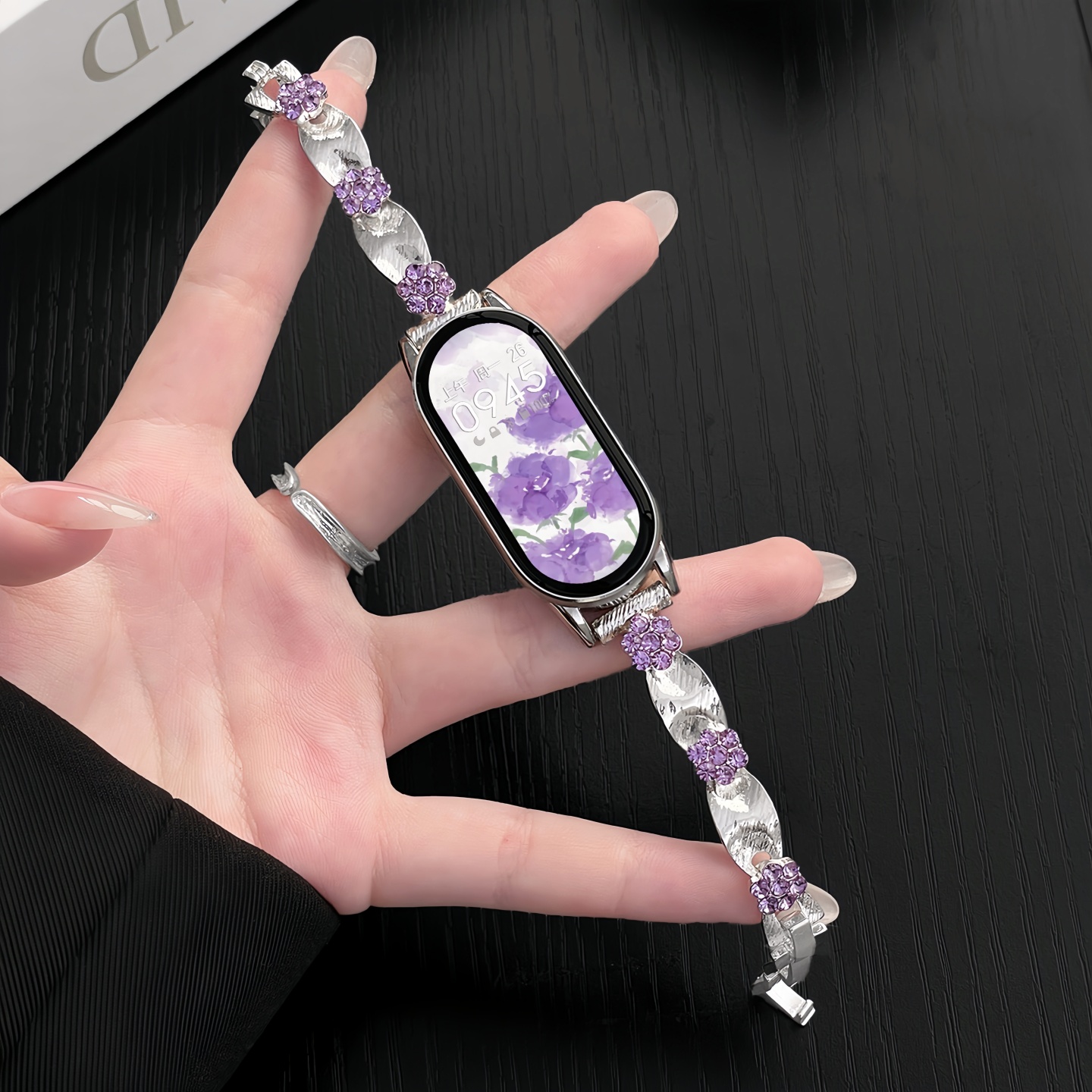 替换带配件 7创意女生6夏天时尚 适用小米手环10表带链条丝绒花金属手链9nfc版 智能运动手表链8高级感陶瓷版