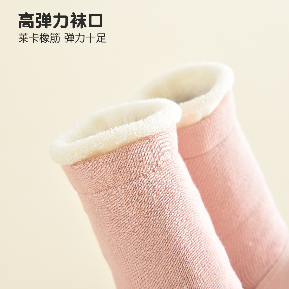 婴儿地板学步袜加绒毛圈宝宝防滑软底牛筋底秋冬季 幼儿高筒步前鞋