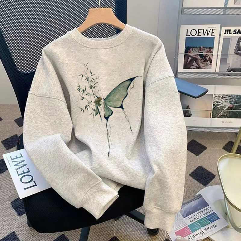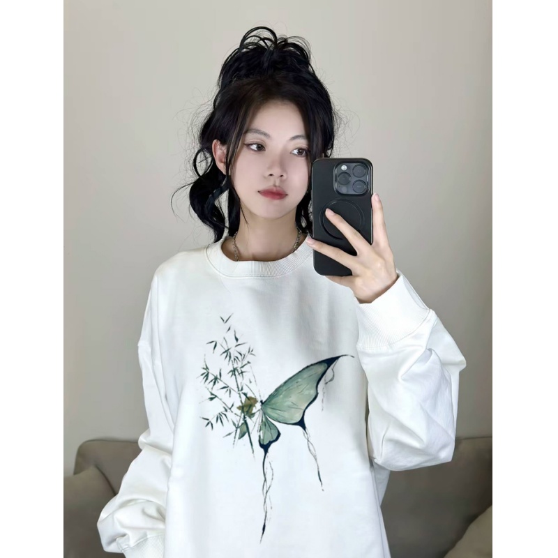 韩系早秋爆款 秋冬季 小个子上衣 白色圆领卫衣女2025新款 国风新中式