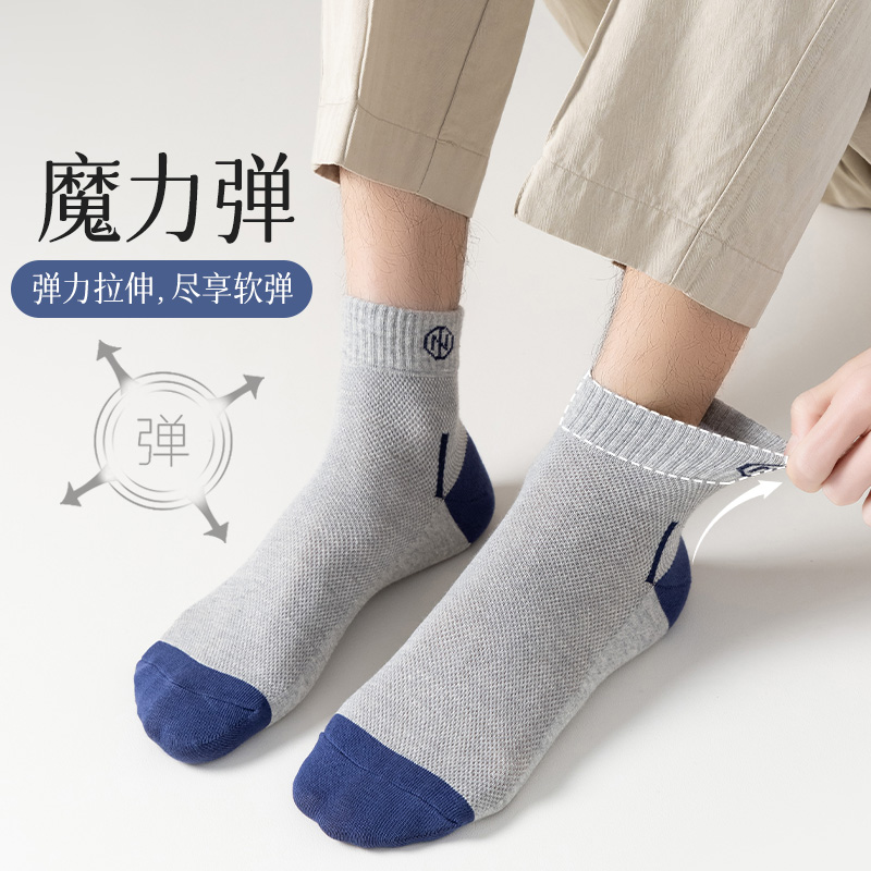 袜子男纯棉春秋款 中筒袜 短袜7a抗菌灰色无骨防臭脚吸汗青少年男士