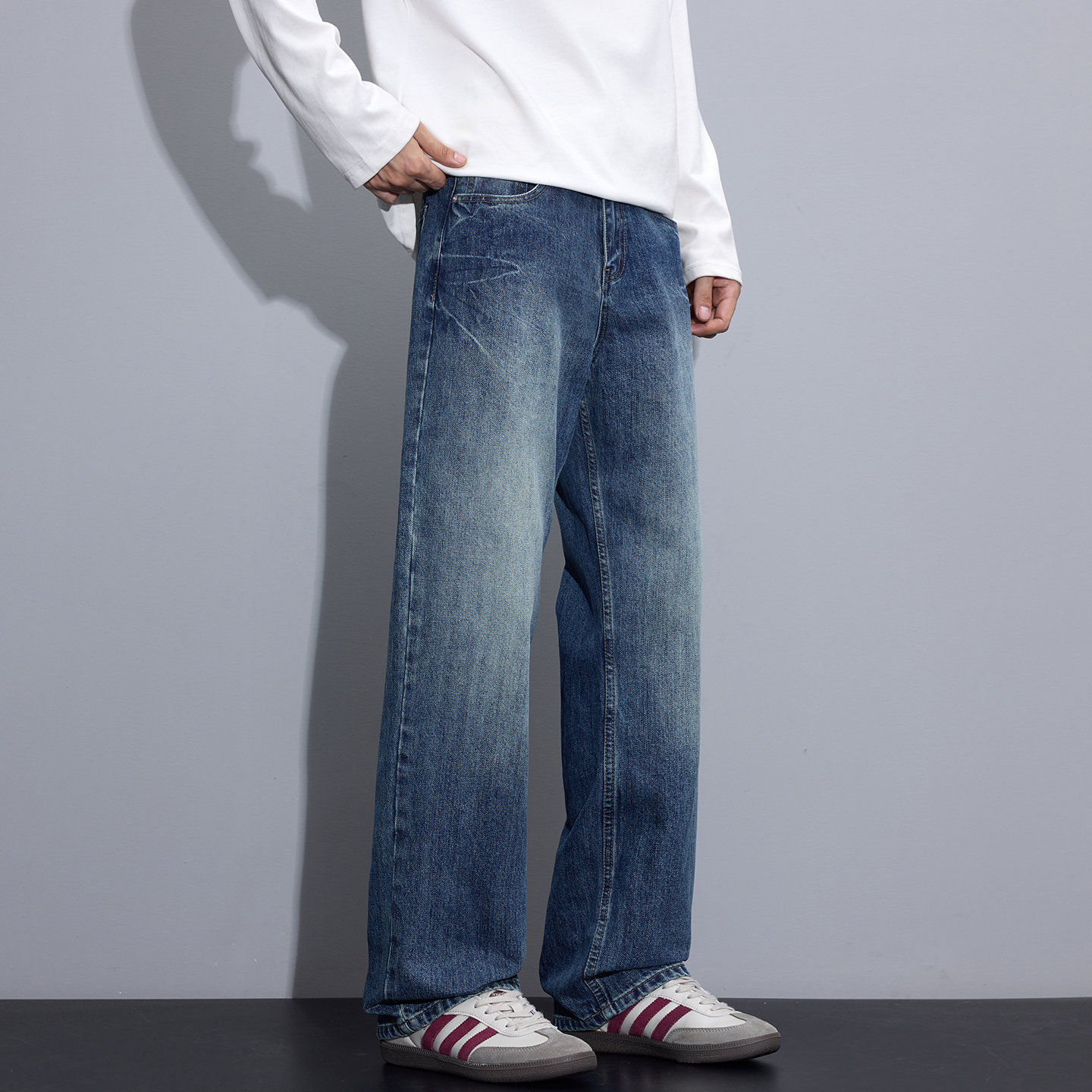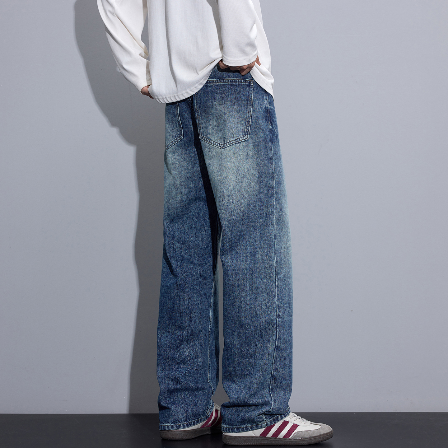 慵懒拖地直筒裤 女2025夏季 宽松阔腿牛仔裤 淘稚气防褪色丹宁蓝美式
