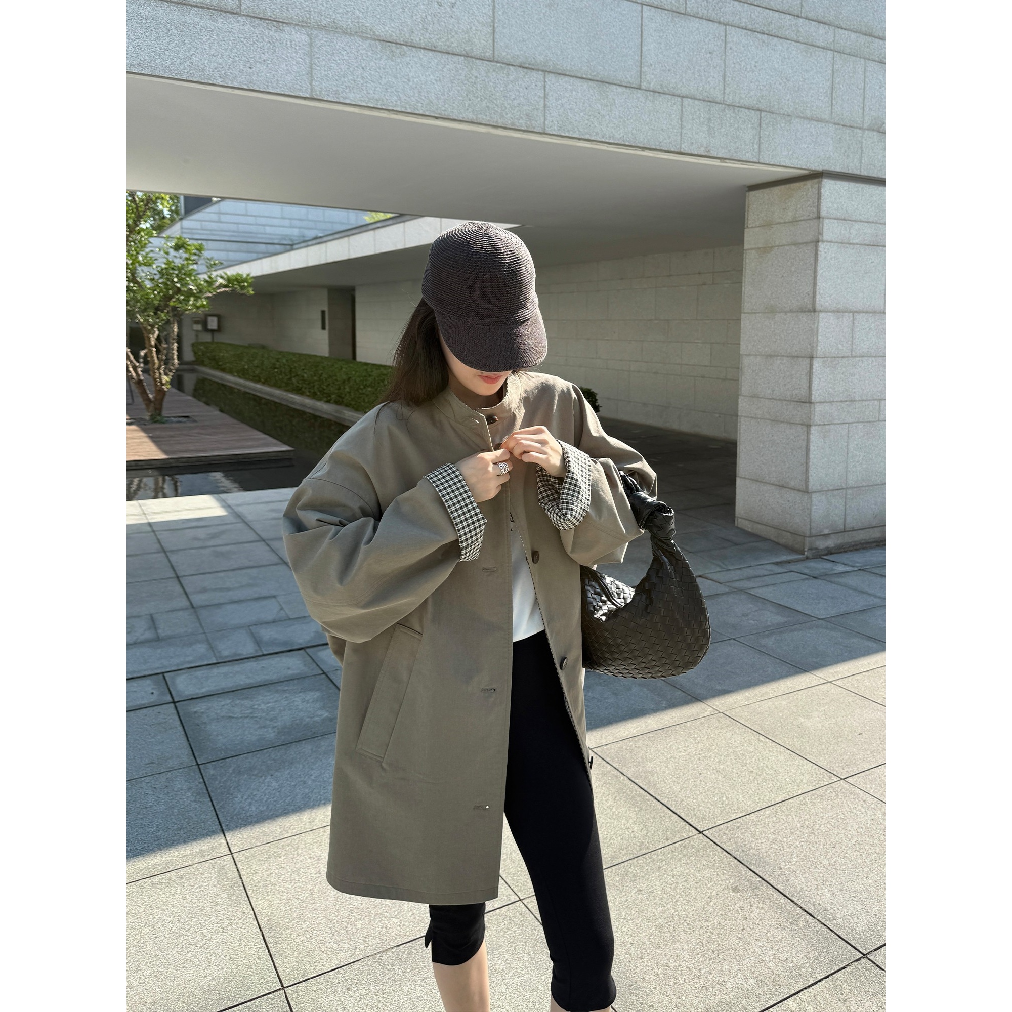 风衣秋款 常规OL通勤撞色短款 加肥洋气短外套 韩版 胖女孩微胖特大码