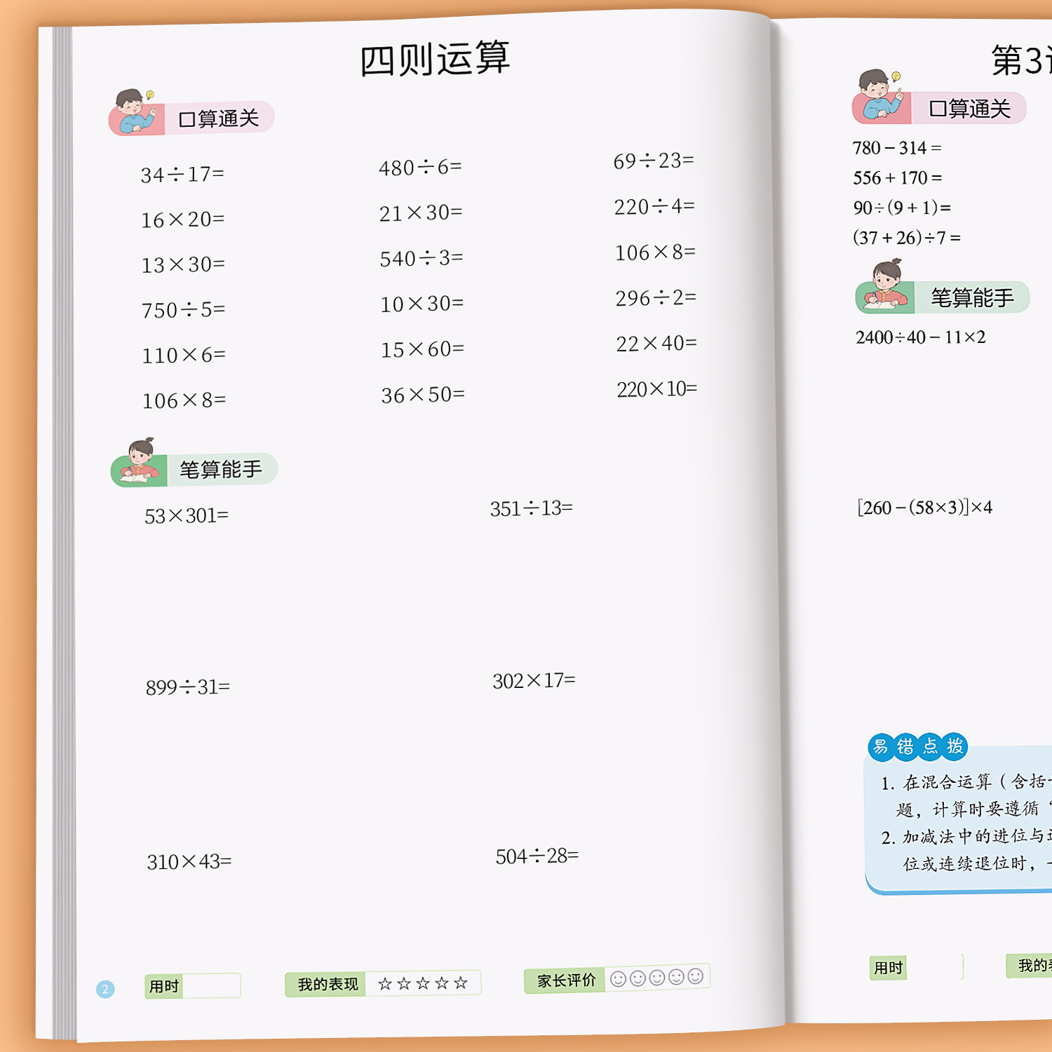 四则运算应用题思维训练同步练习题 脱式 四年级数学计算题强化训练上册口算天天练人教版 口算题卡每日一练小学4年级数学上下册竖式