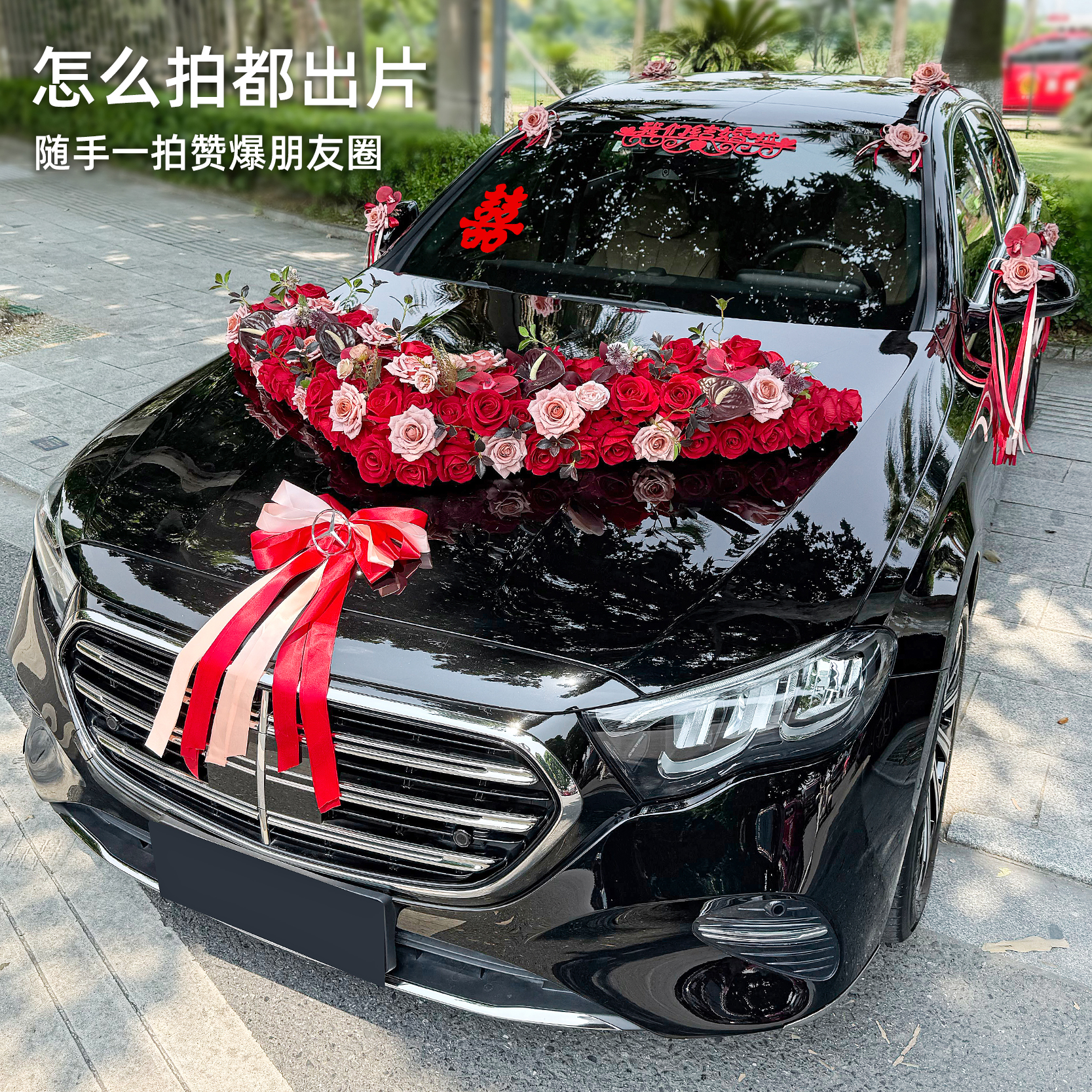 主婚车装 饰大V型车头花结婚花车全套布置头车仿真花车队2025新款